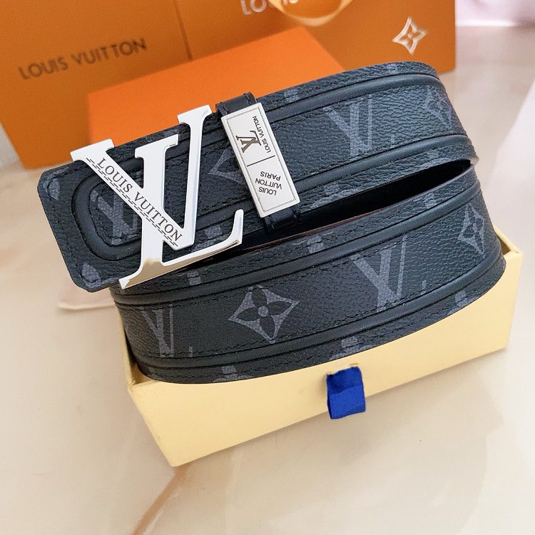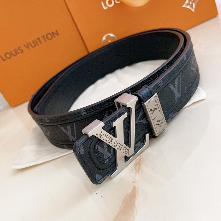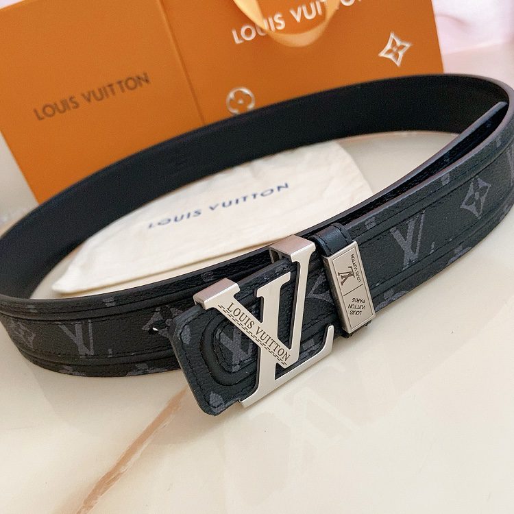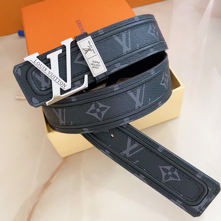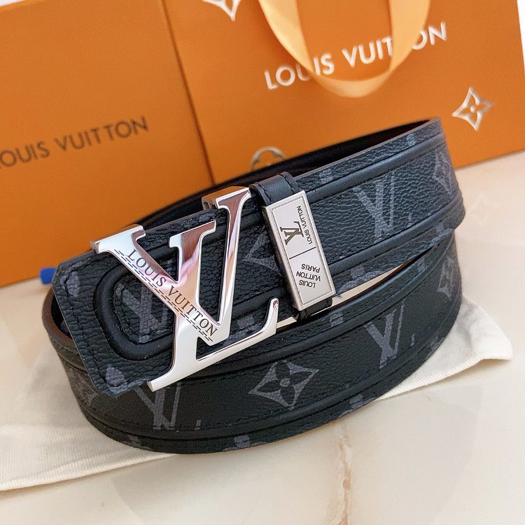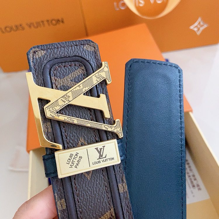 LV Initiales 40mm new English steel buckle counter belt printed sand bottom double-sided style interprets two classics: Monogram shows the essence of Louis Vuitton’s beauty, and calfskin interprets low-key elegance. An LV monogram buckle completes this versatile design. D