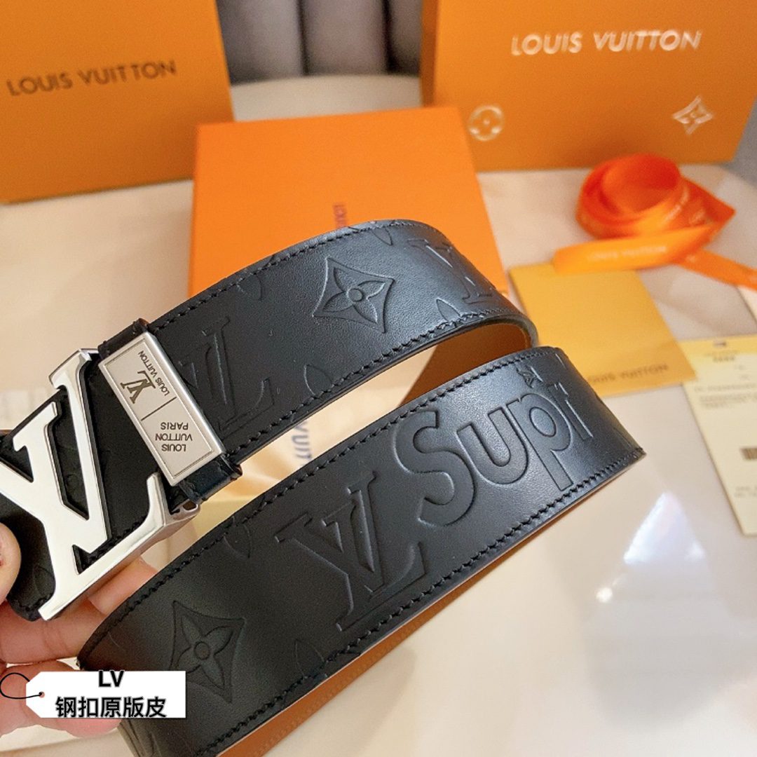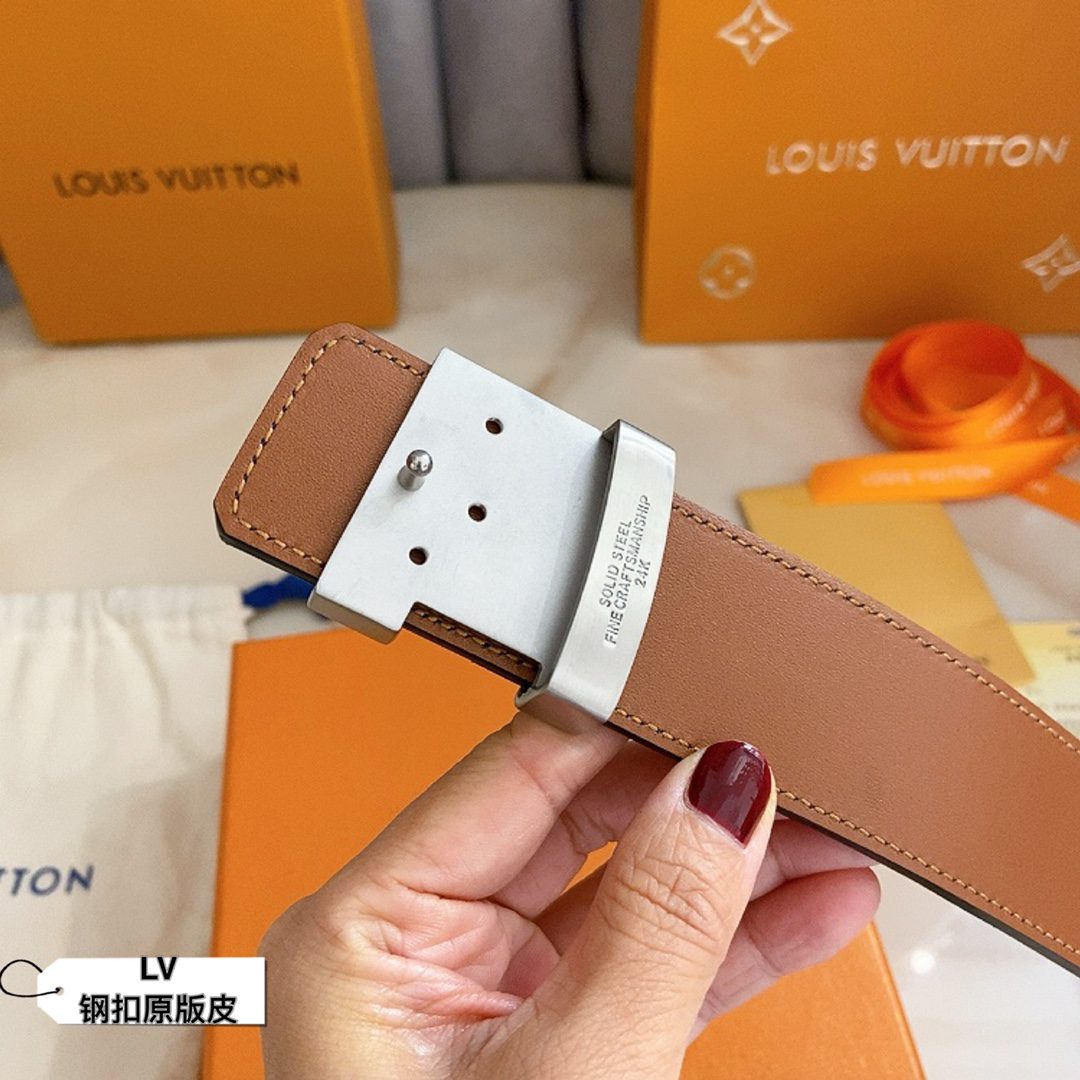 Belt LV Initiales 40 mm new English steel buckle printed double-sided cowhide leather base $129.00 Original price was: $129.00.$89.00Current price is: $89.00.
