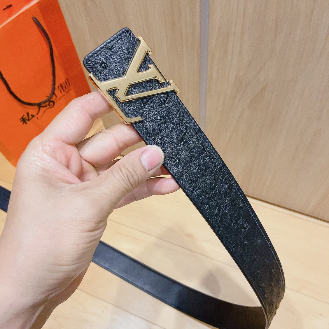 Home Belt Belt LV Initiales 40 mm ostrich leather, new hollow steel buckle, counter belt with double