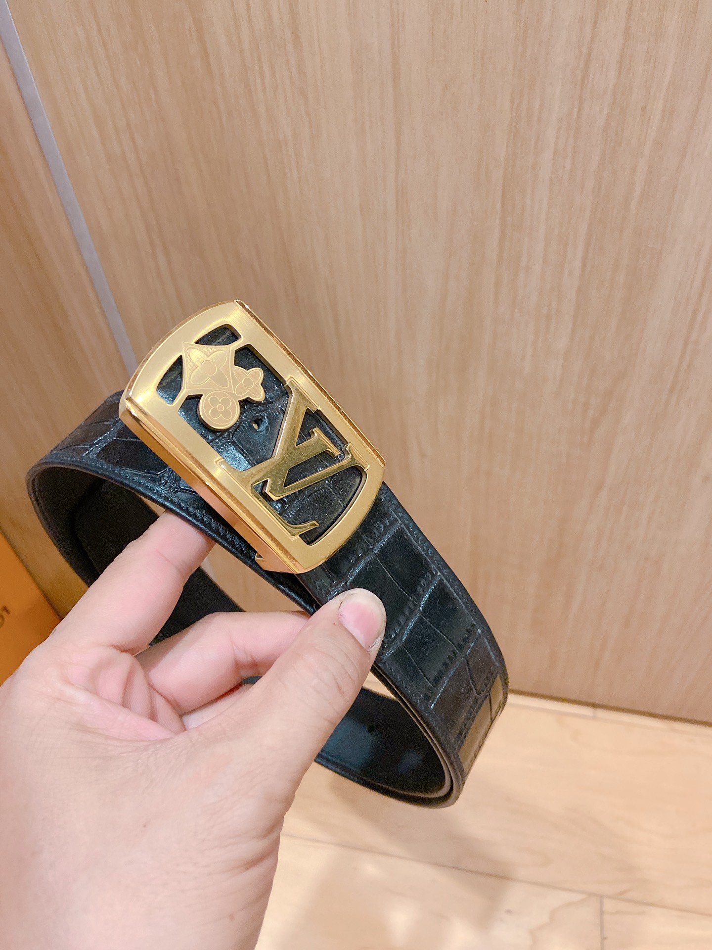 Belt LV automatic size 5 with steel buckle original leather elephant pattern leather pattern Initiales mm, belt