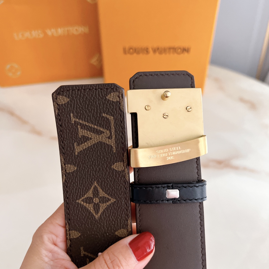 Belt LV Initiales 40mm new hollow steel buckle counter belt with double-sided style