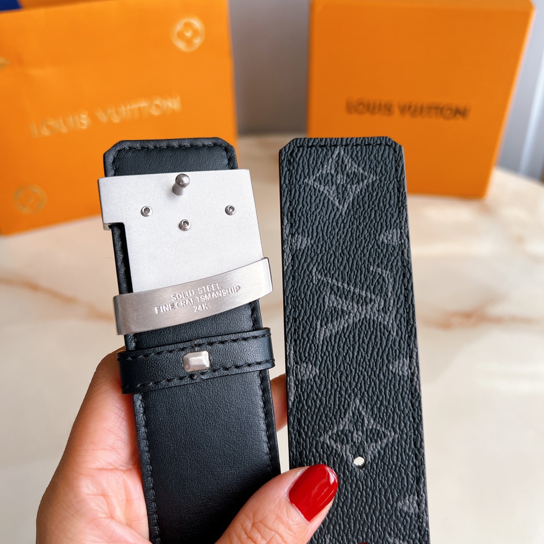 Belt LV Initiales 40mm new hollow steel buckle counter belt with double-sided style