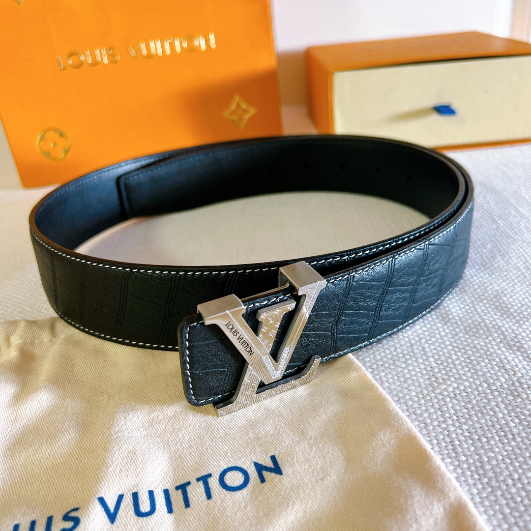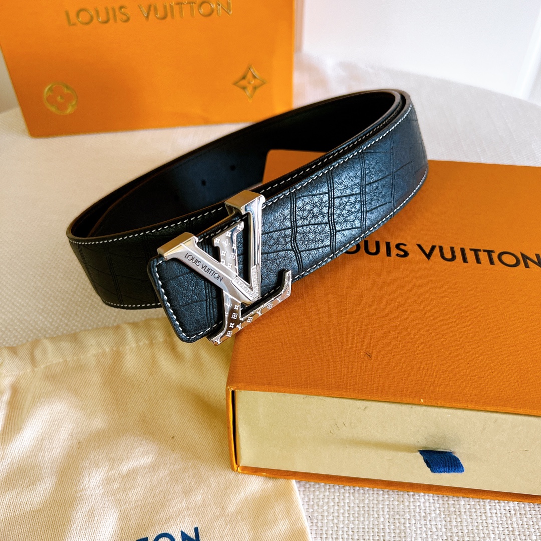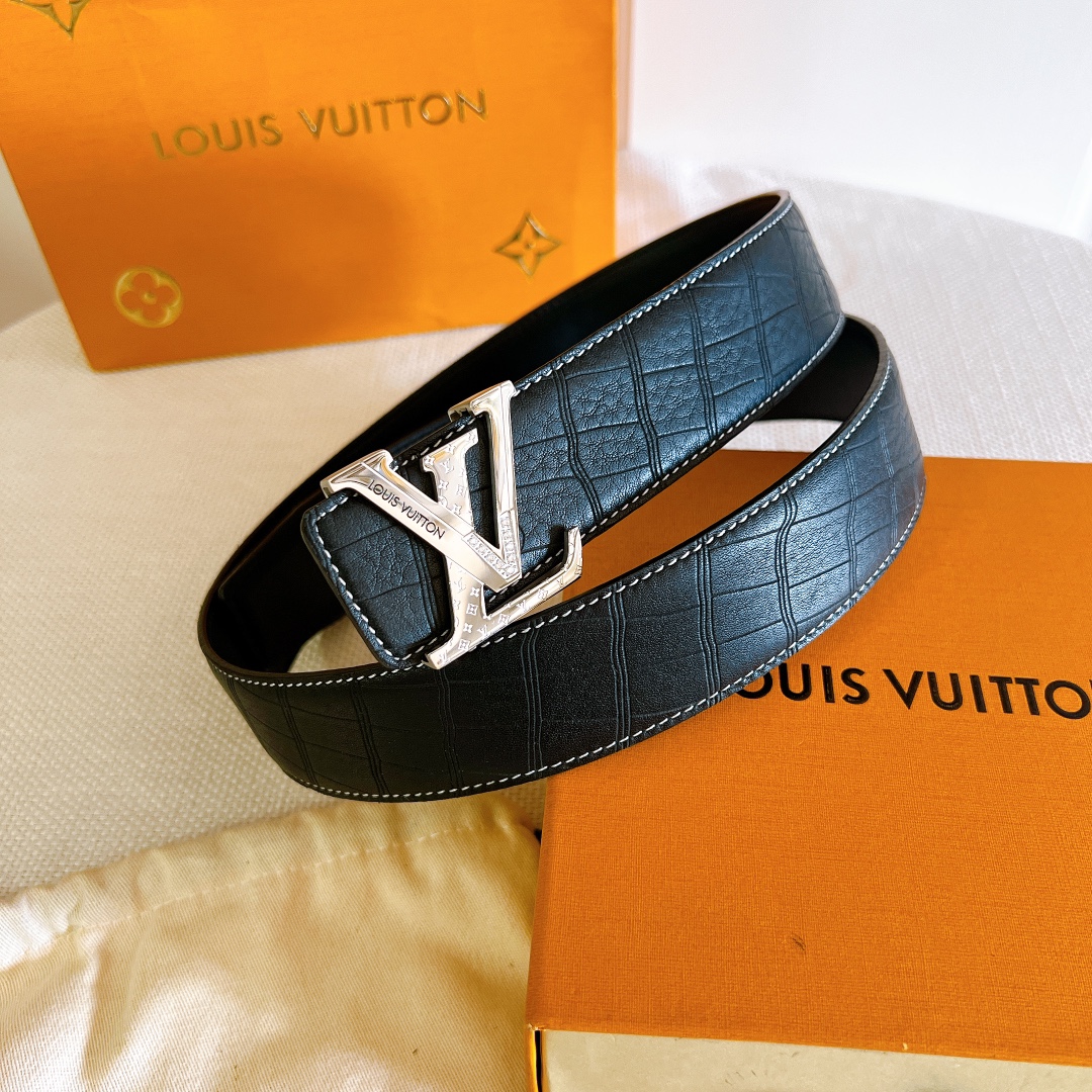 LV Initiales 40mm new hollow steel diamond buckle with deerskin 🦌 pattern counter belt interprets two classics in a double-sided style: Monogram shows the essence of Louis Vuitton’s beauty, and calfskin interprets low-key elegance. An LV monogram buckle completes this versatile design. D