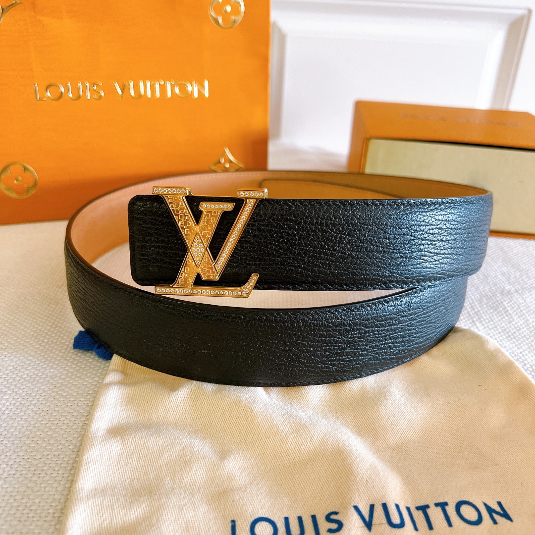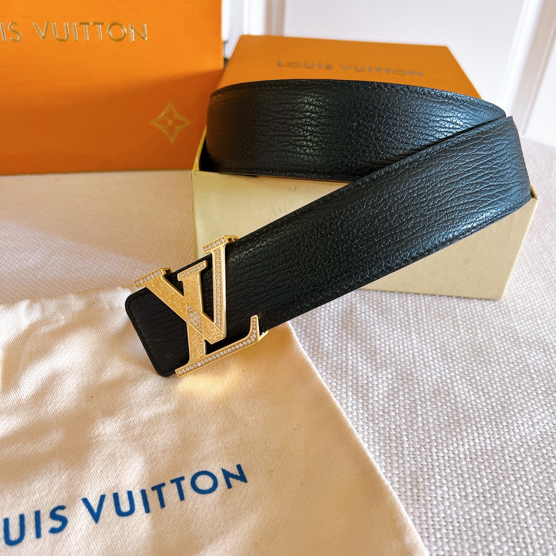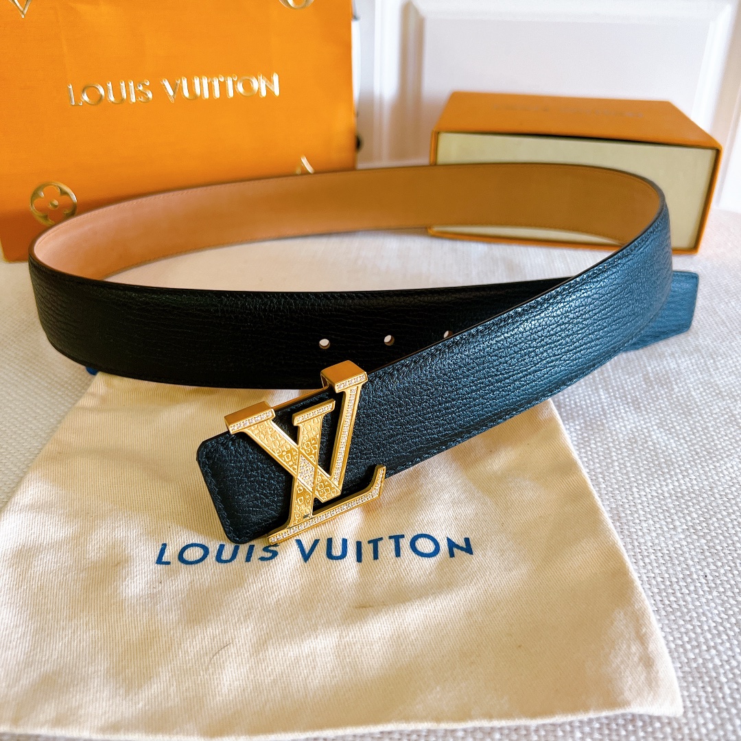 LV Initiales 40mm new hollow steel diamond buckle with shark pattern counter belt interprets two classics in a double-sided style: Monogram shows the essence of Louis Vuitton’s beauty, and calfskin interprets low-key elegance. An LV monogram buckle completes this versatile design. D