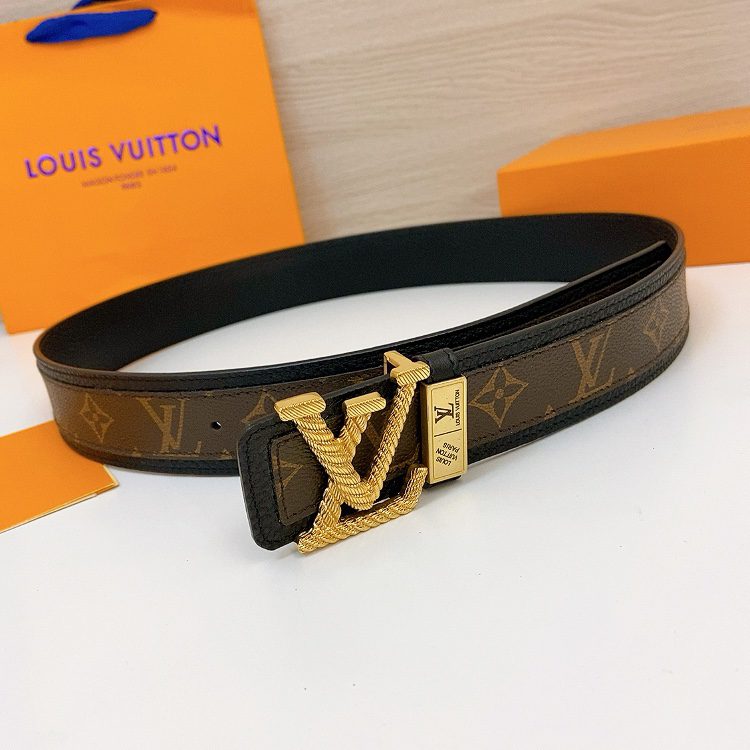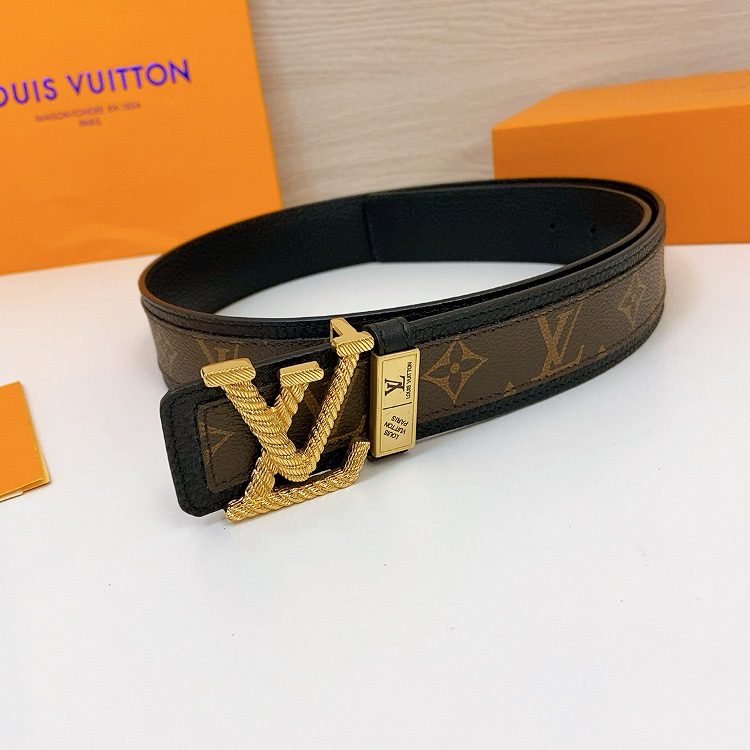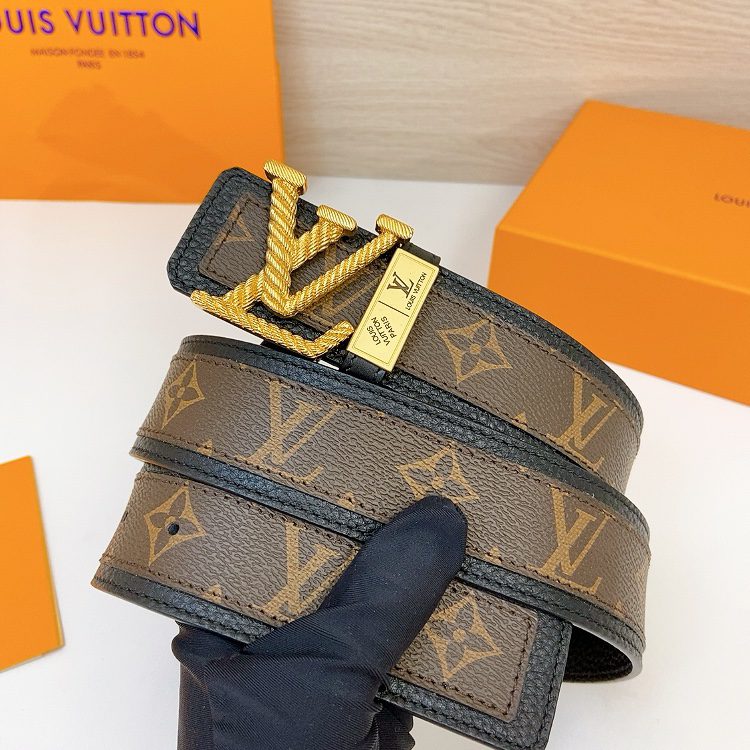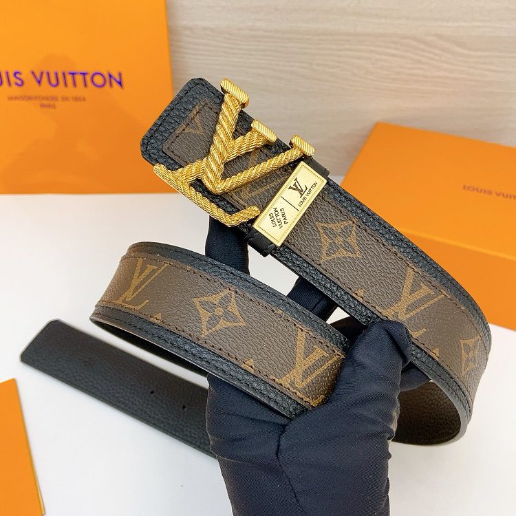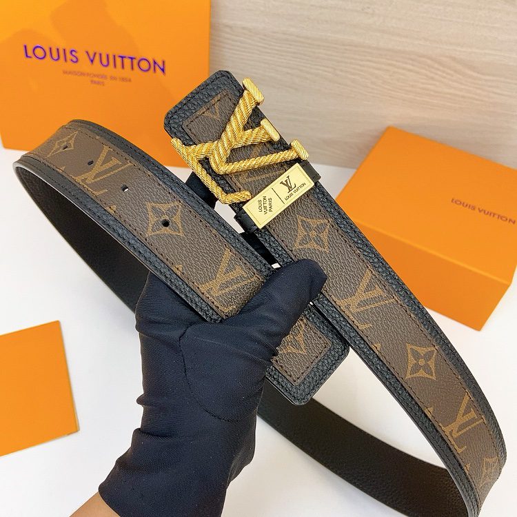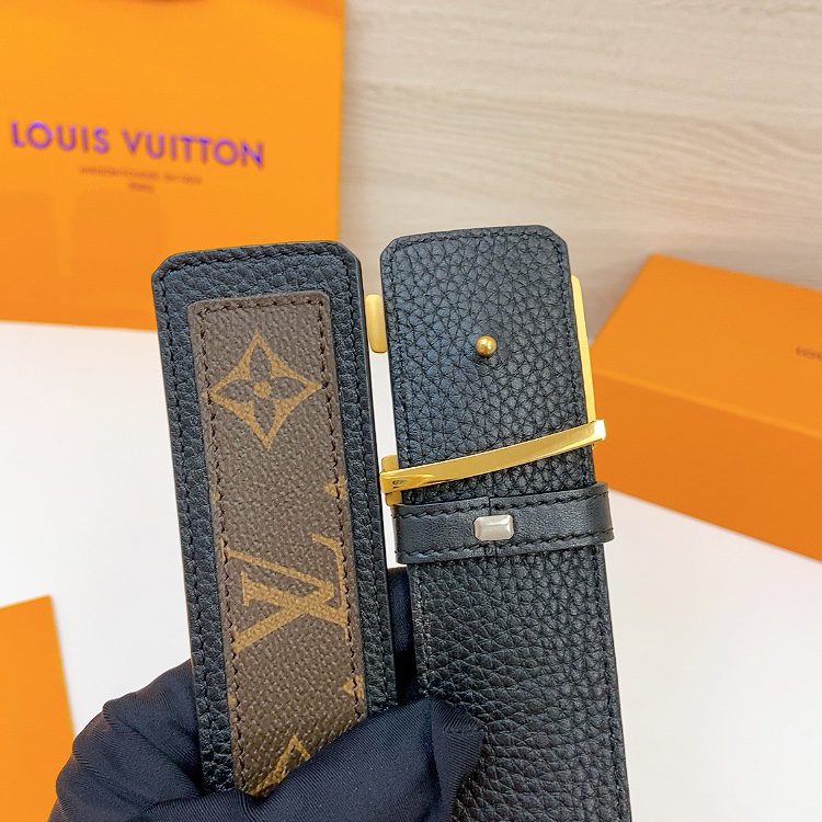 LV Initiales 40 mm, the belt interprets two classics in a double-sided style: Monogram shows the essence of Louis Vuitton’s beauty, and calfskin interprets low-key elegance. An LV monogram buckle completes this versatile design. D5