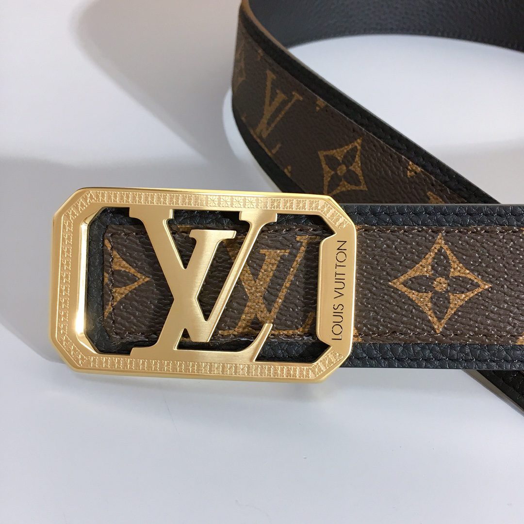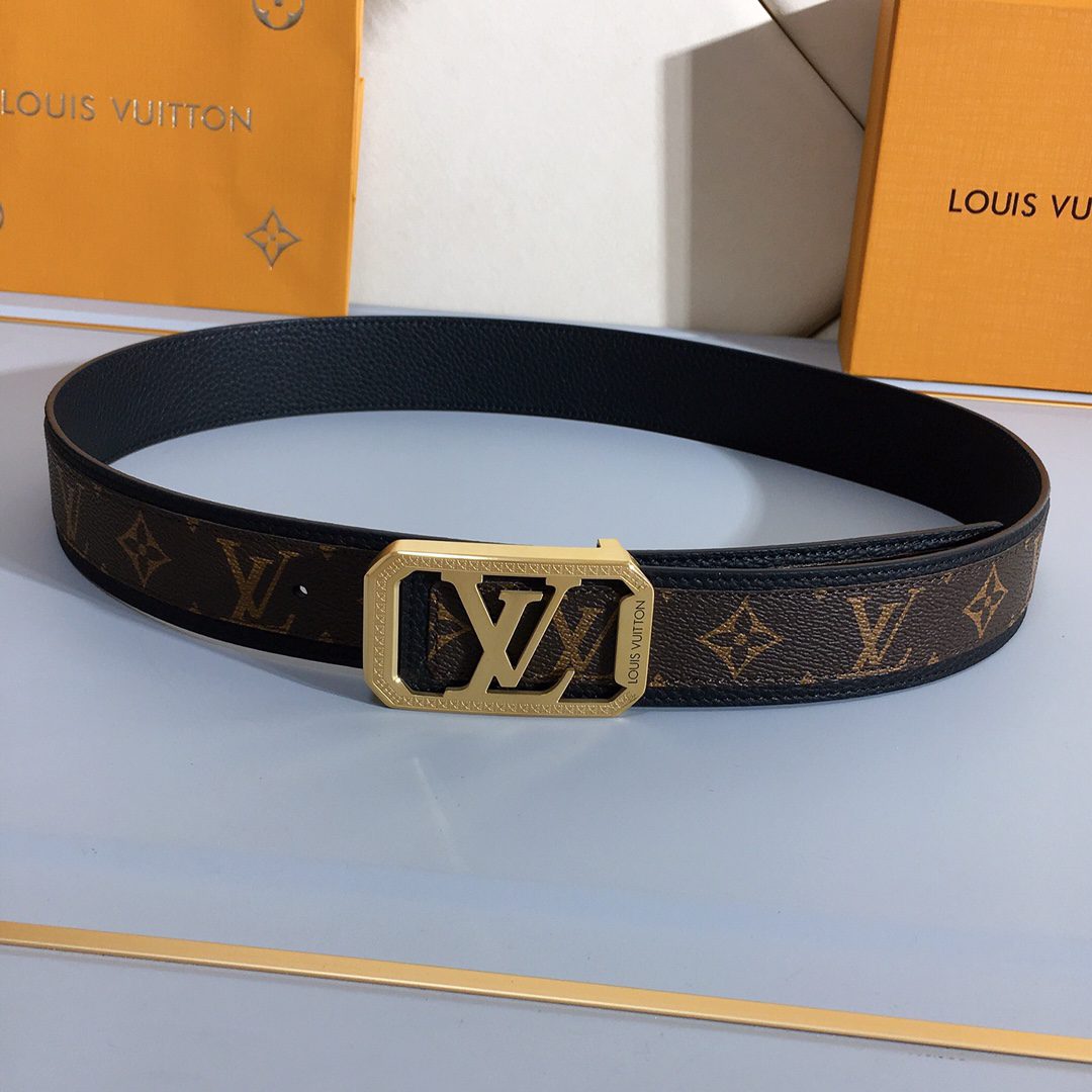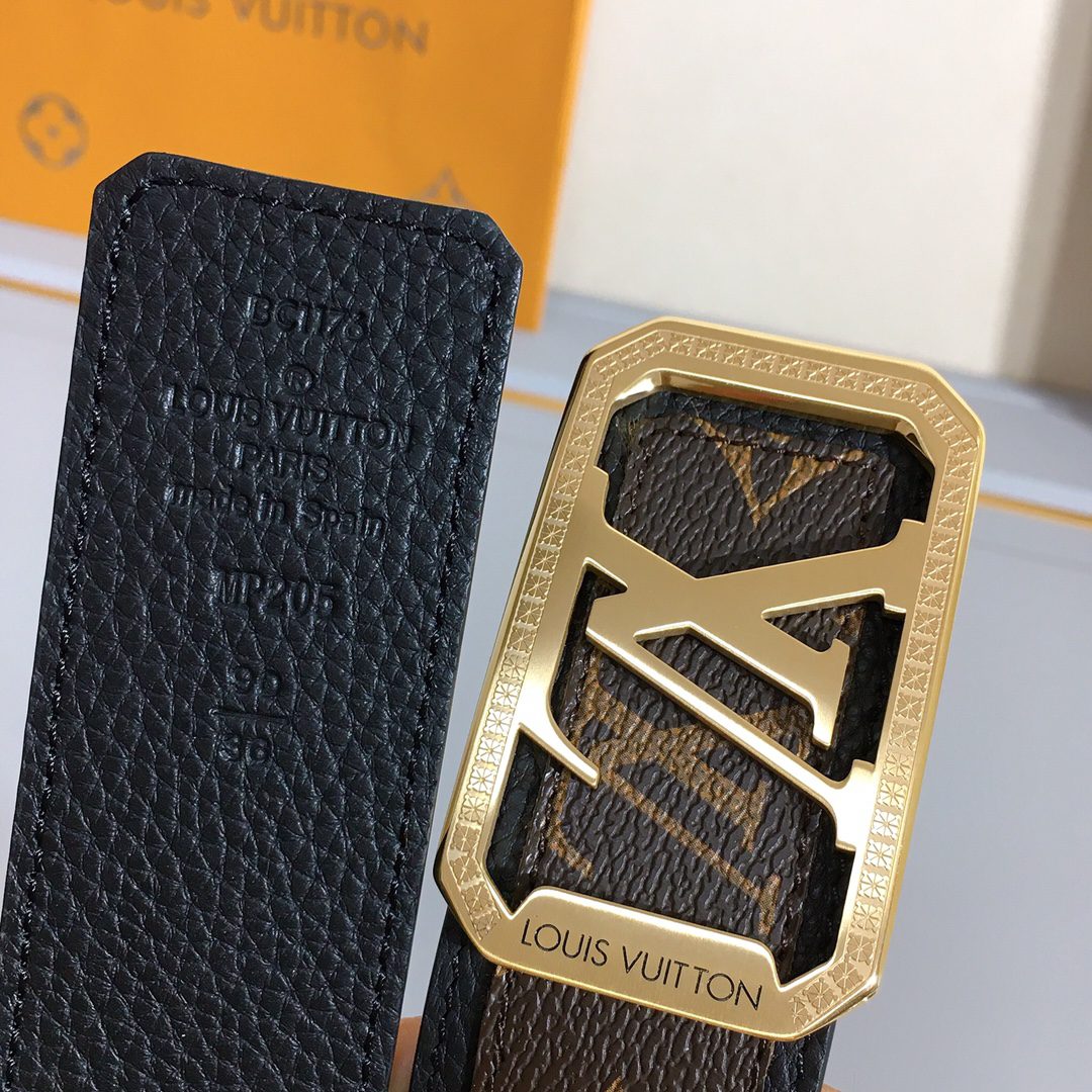 LV men’s 40mm, a design debuted at the spring and summer fashion show, Monogram canvas and leather present a collage look and contrasting outlines, embellished with LV letter buckles. D