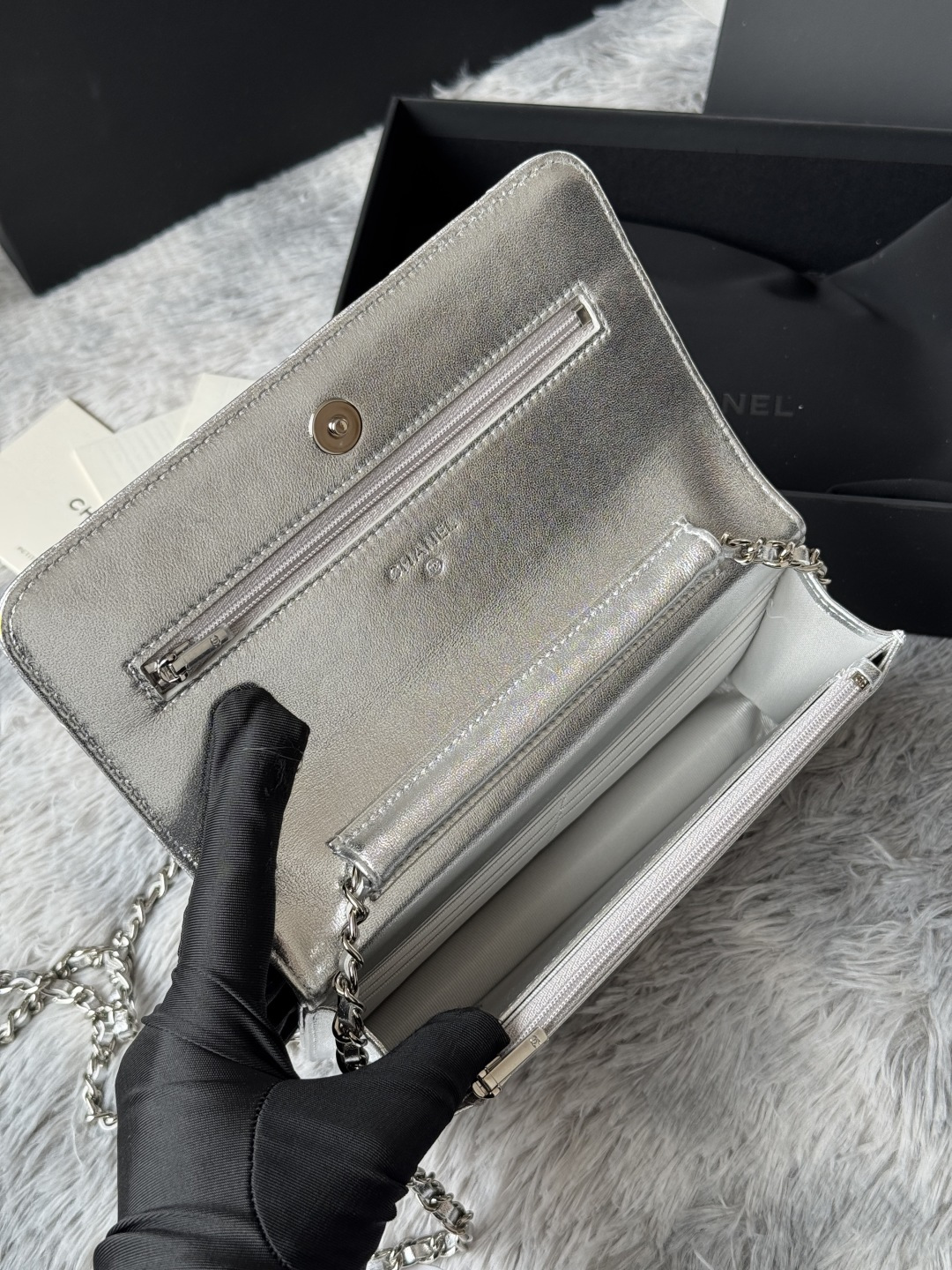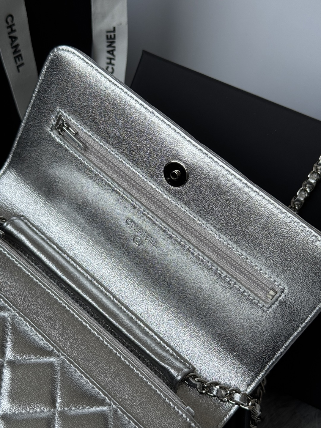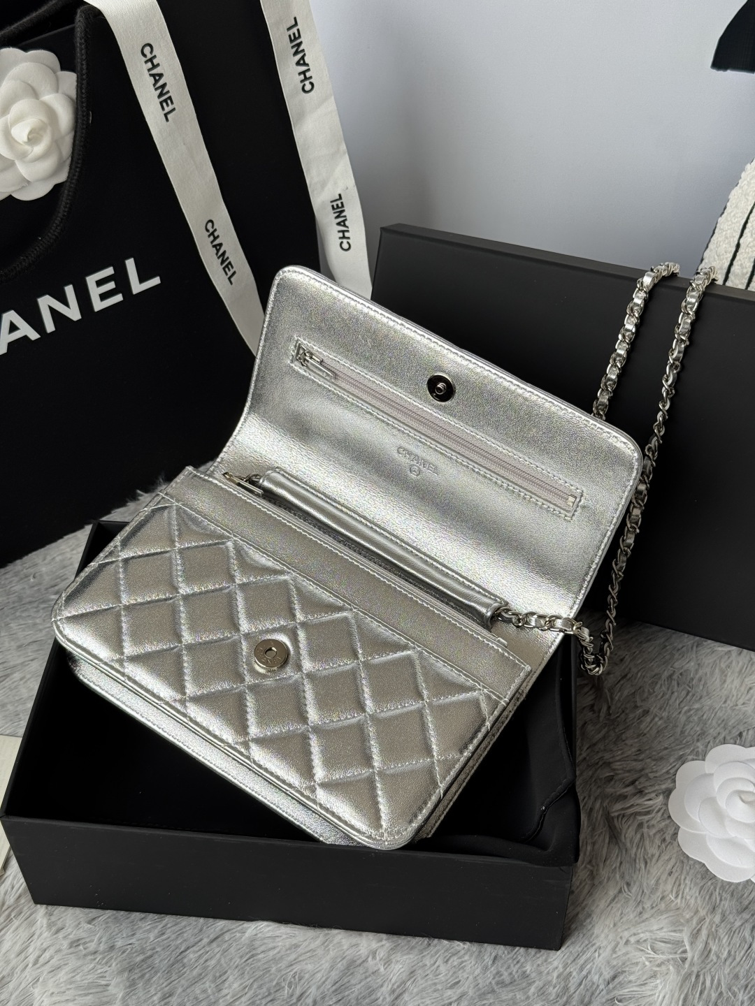 New version of WOC fortune bag, 0250 magnetic buckle, imported original sheepskin, classic rhombus and leather-clad metal chain classic design. The appearance is the same as the previous classic WOC. The difference is that the inner zipper becomes metal and the snap button becomes a more convenient magnet buckle. It is a super upgraded design ~ Size: cm.
