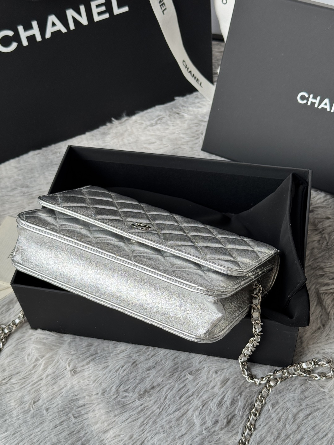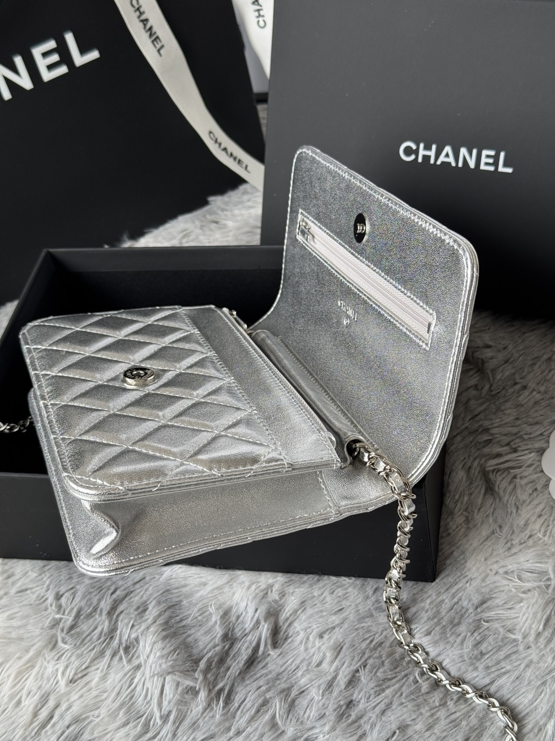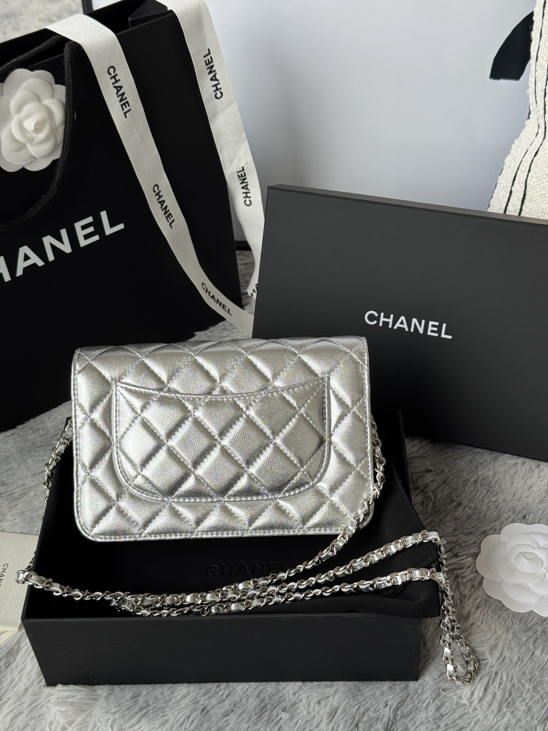 New version of WOC fortune bag, 0250 magnetic buckle, imported original sheepskin, classic rhombus and leather-clad metal chain classic design. The appearance is the same as the previous classic WOC. The difference is that the inner zipper becomes metal and the snap button becomes a more convenient magnet buckle. It is a super upgraded design ~ Size: cm.