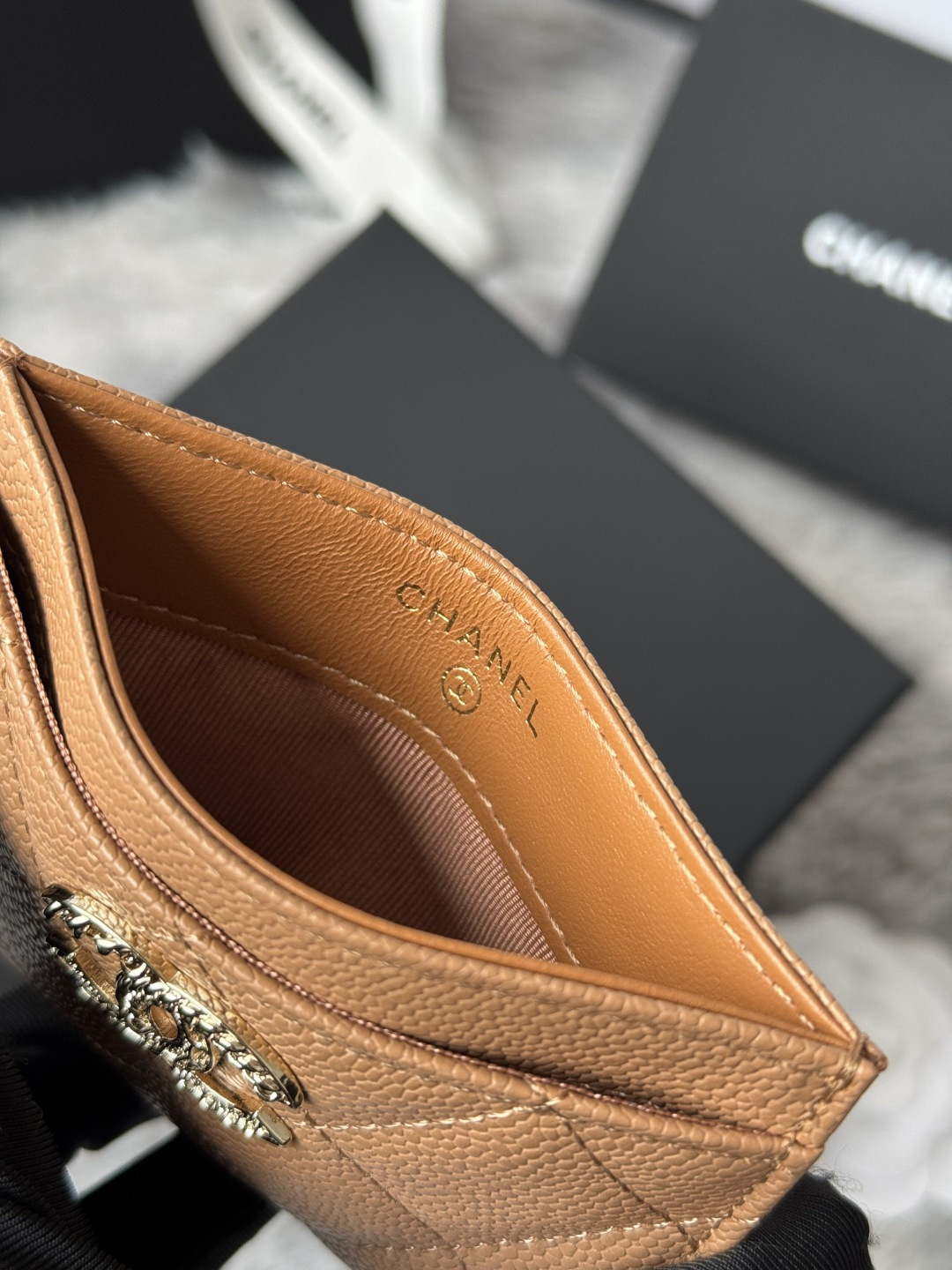 Model AP48 CHANEL 22k embossed lgo large double C hardware, official website 2023 latest card holder, caviar medium ball grain cowhide, anti-scratch, super glossy, 3 card slots each put a card, you can also put a card + a few coins in the middle