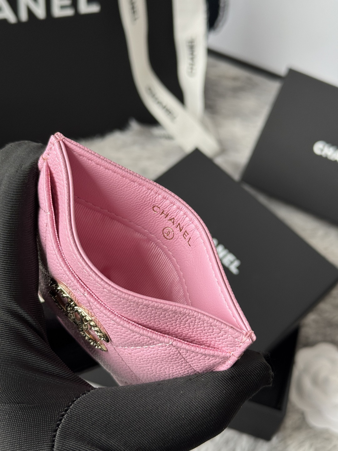 Model AP48 CHANEL 22k embossed lgo large double C hardware, official website 2023 latest card holder, caviar medium ball grain cowhide, anti-scratch, super glossy, 3 card slots each put a card, you can also put a card + a few coins in the middle