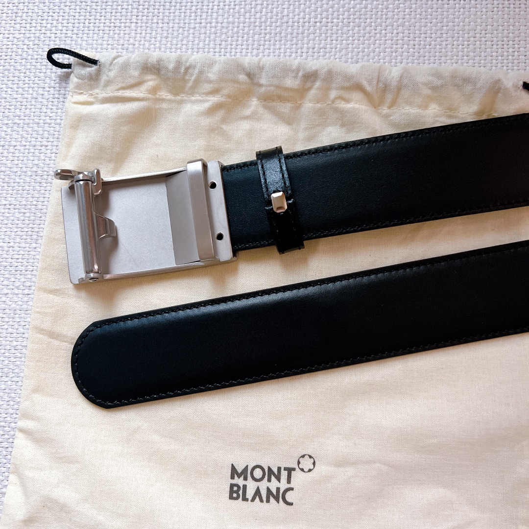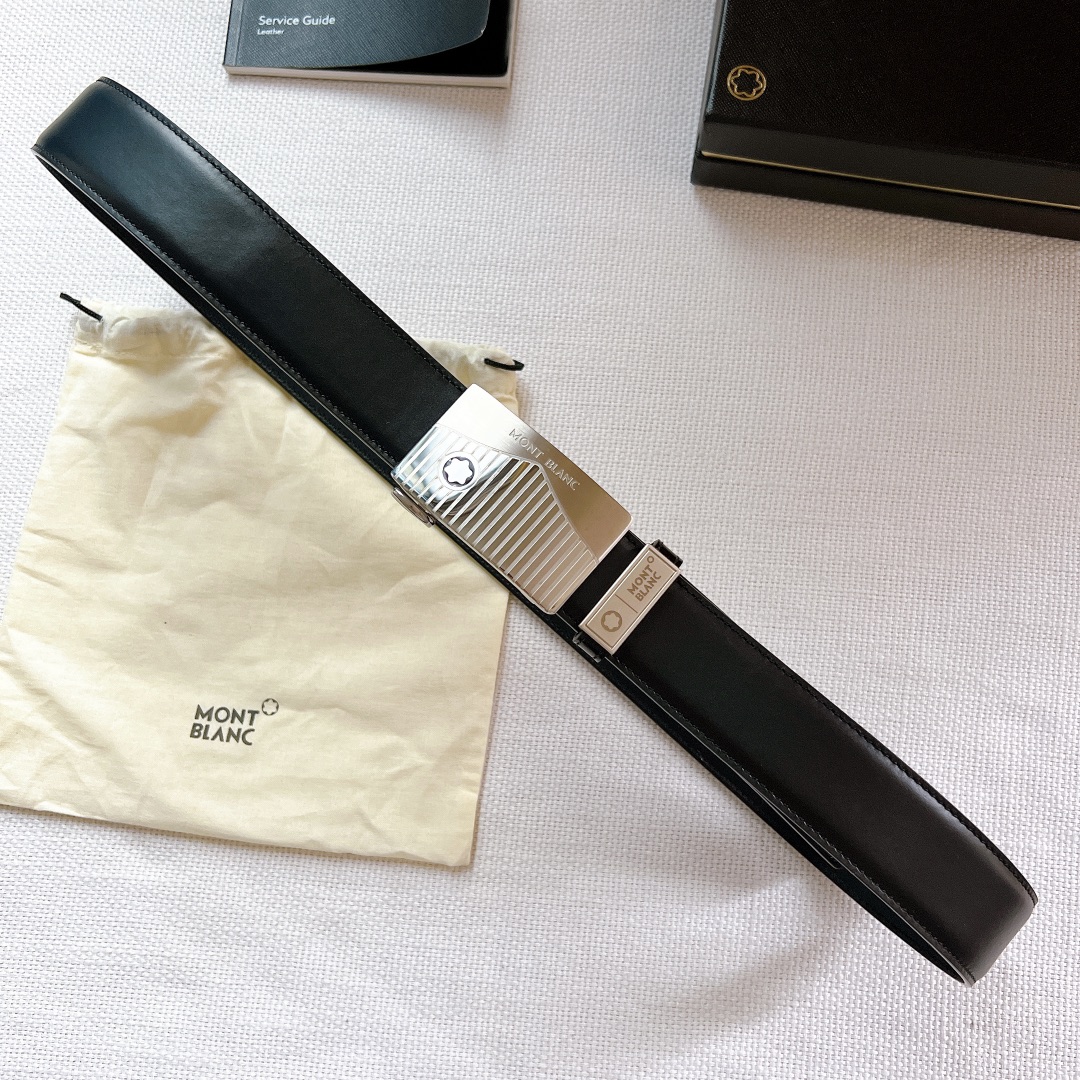 Montblanc Steel Buckle Original Inner Buckle Men’s Stainless Steel Sliding Buckle Belt, Montblanc Striped Automatic Head Calfskin Belt. D