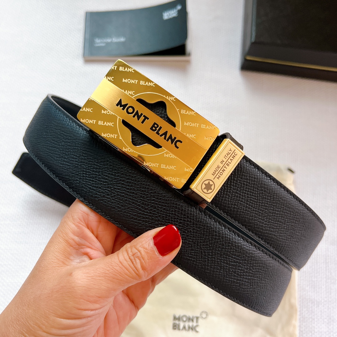 Belt Montblanc Steel Buckle Original Inner Buckle Men’s Stainless Steel Slide Buckle Belt, Montblanc Striped Automatic Head Calfskin