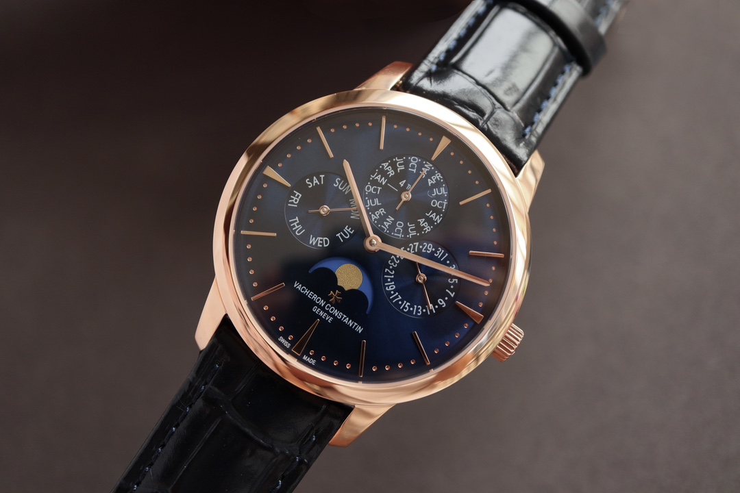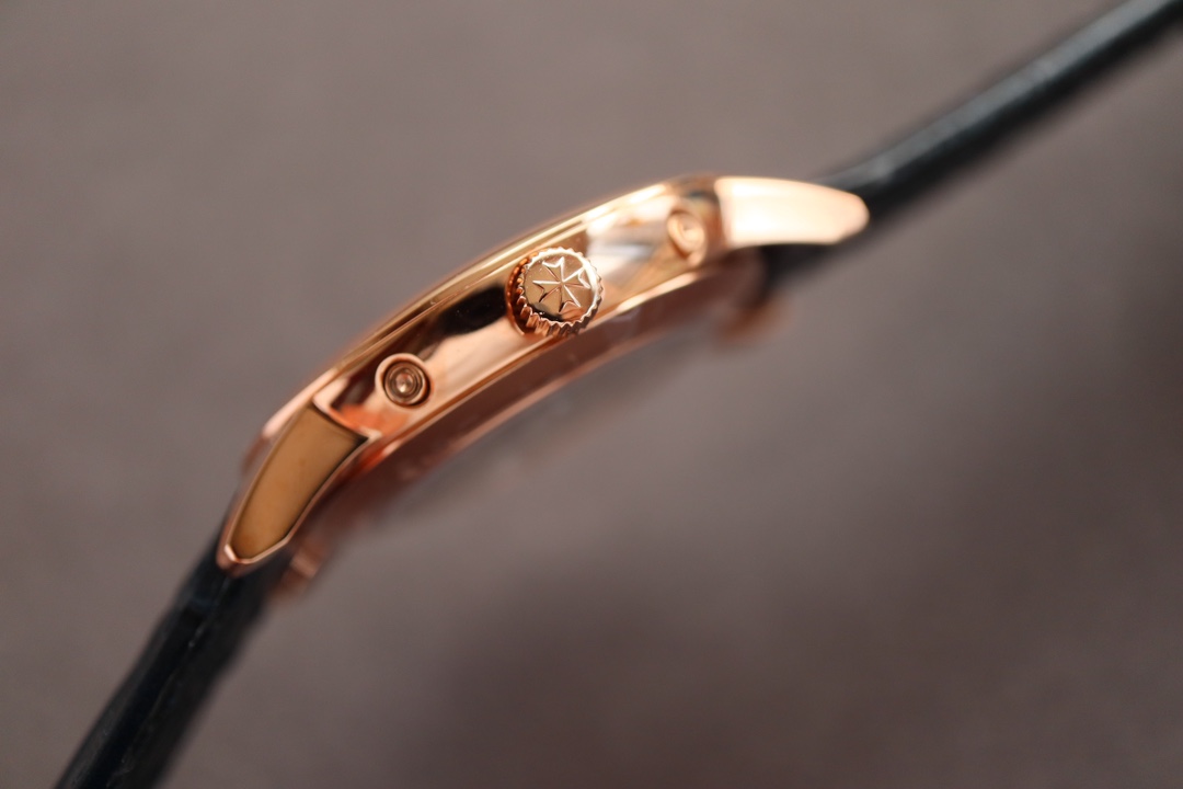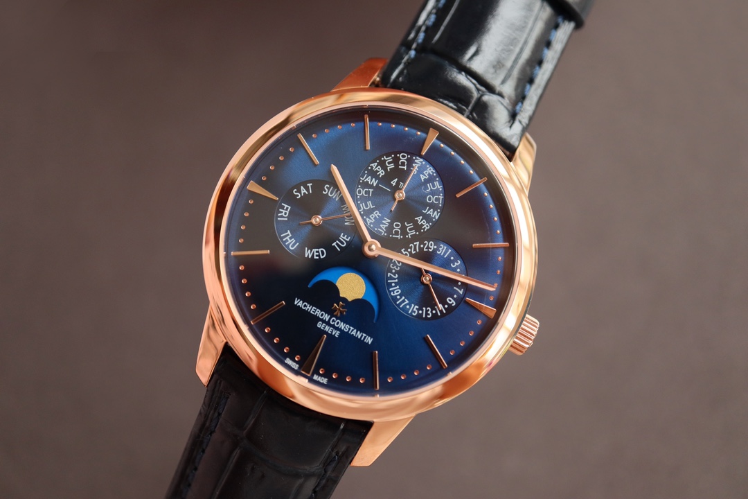 Mx new product – Vacheron Constantin Patrimony Contemporaine heritage series ultra-thin perpetual calendar watch [Model]: 4R-9687_B5 [Case]: The diameter of the watch is 4.03cm, which is the thinnest version on the entire network. The watch has simple lines and smooth outlines, adhering to the consistent thinness and elegance of the Heritage series. It is a “milestone” outstanding achievement in the pursuit of ultra-thin timepiece craftsmanship. [Dial]: The watch follows the pure and simple style of this series, with slim trapezoidal hour scales, stick-shaped hands, slightly arched arc dial design and “bead-type” minute scale ring. On the milky white silver-plated dial, in the crescent-shaped moon phase profit and loss display dial, a golden bright moon circulates in the dark blue night sky, slowly and slowly. (The QP self-winding integrated movement takes the thinness of the watch to a new level. The hollow oscillating weight makes the watch movement more ornamental, especially the Vacheron Constantin “Maltese Cross” logo pattern in the center of the oscillating weight, which adds a unique connotation and charm of the brand to the watch. # Vacheron Constantin # # Zhuoerbuqun #