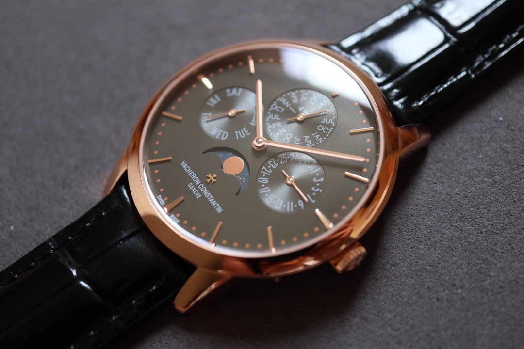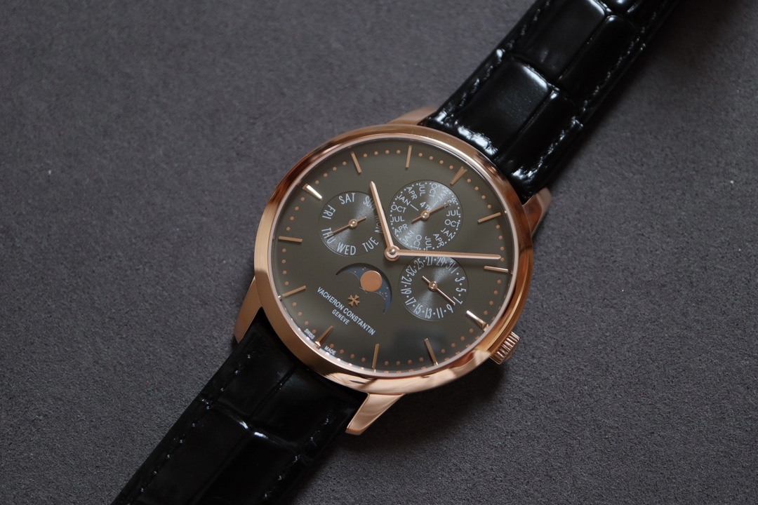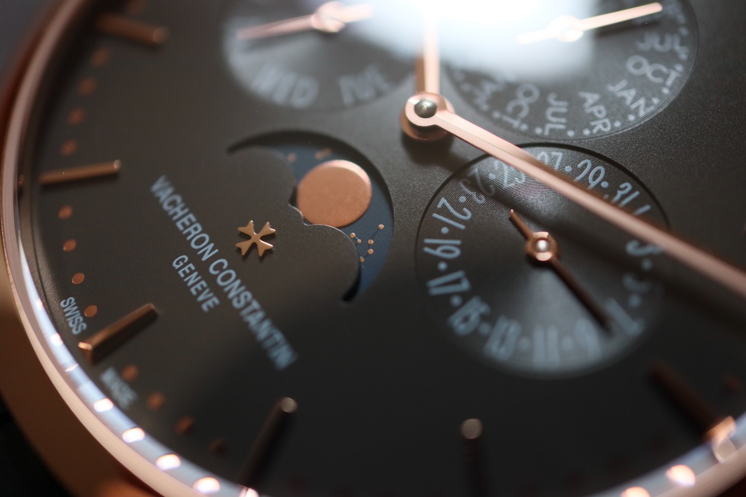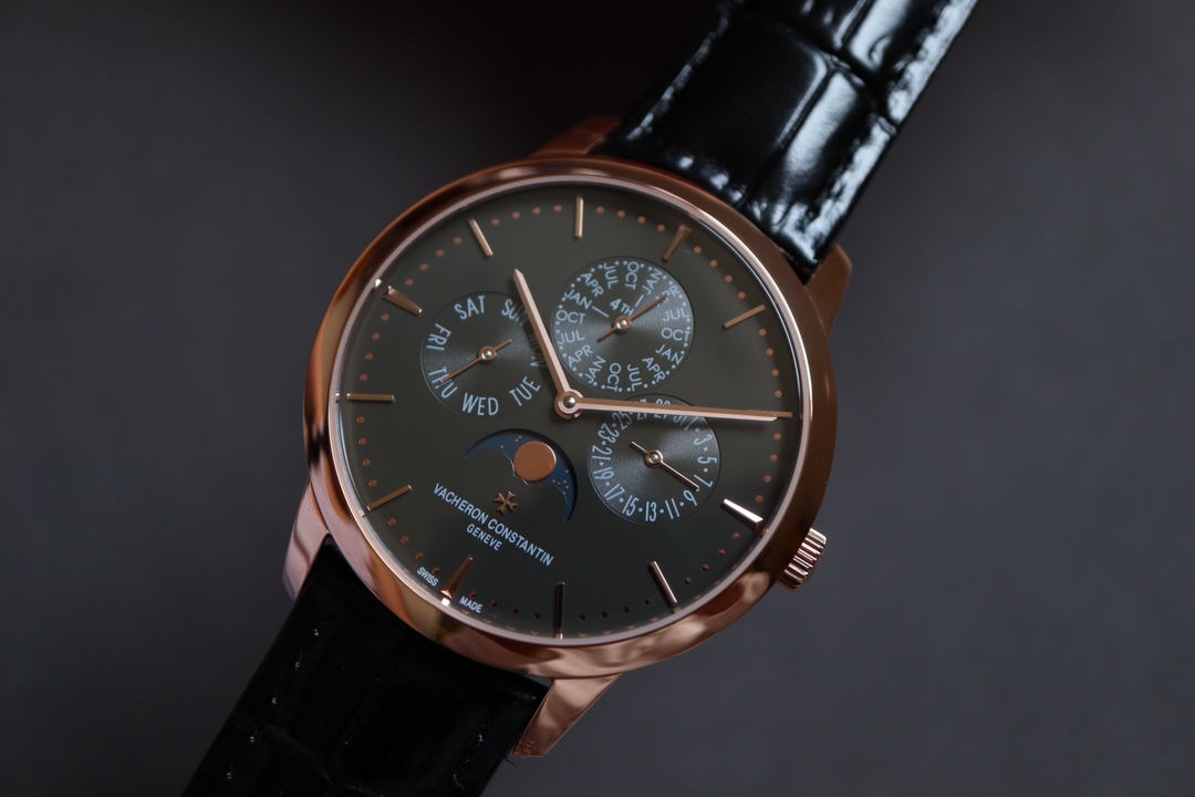 Mx new product – Vacheron Constantin Patrimony Contemporaine heritage series ultra-thin perpetual calendar watch [Model]: 4R-9687_B5 [Case]: The diameter of the watch is 4.03cm, which is the thinnest version on the entire network. The watch has simple lines and smooth outlines, adhering to the consistent thinness and elegance of the Heritage series. It is a “milestone” outstanding achievement in the pursuit of ultra-thin timepiece craftsmanship. [Dial]: The watch follows the pure and simple style of this series, with slim trapezoidal hour scales, stick-shaped hands, slightly arched arc dial design and “bead-type” minute scale ring. On the milky white silver-plated dial, in the crescent-shaped moon phase profit and loss display dial, a golden bright moon circulates in the dark blue night sky, slowly and slowly. (The QP self-winding integrated movement takes the thinness of the watch to a new level. The hollow oscillating weight makes the watch movement more ornamental, especially the Vacheron Constantin “Maltese Cross” logo pattern in the center of the oscillating weight, which adds a unique connotation and charm of the brand to the watch. # Vacheron Constantin # # Zhuoerbuqun #
