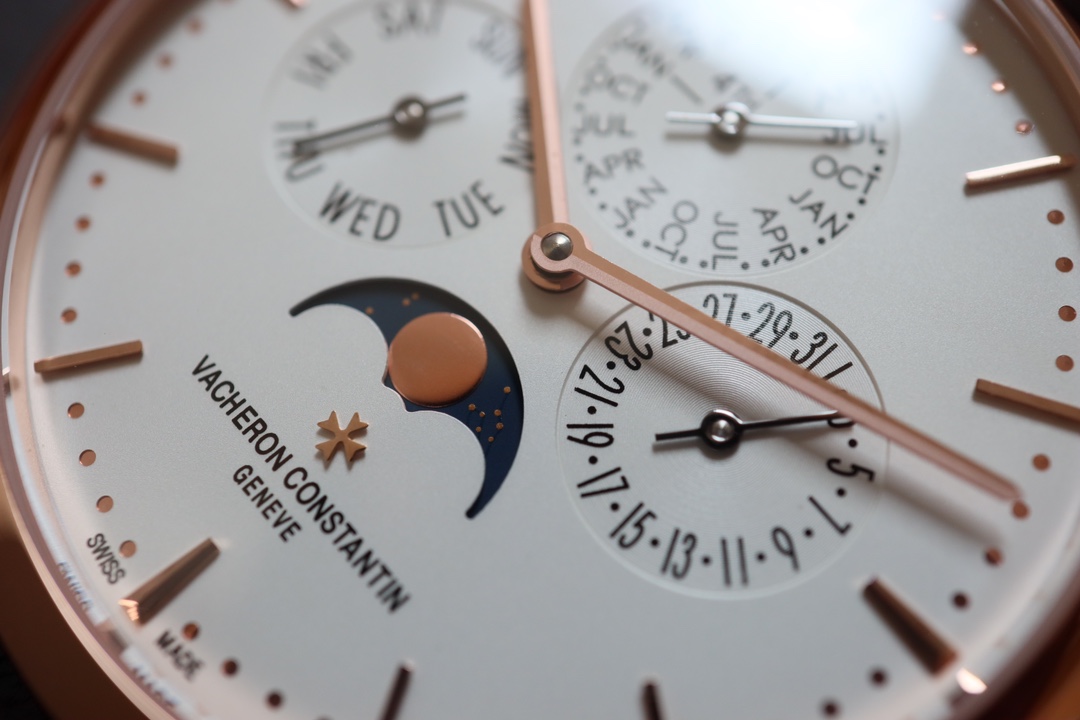 Mx new product – Vacheron Constantin Patrimony Contemporaine heritage series ultra-thin perpetual calendar watch [Model]: 4R-9687_B5 [Case]: The diameter of the watch is 4.03cm, which is the thinnest version on the entire network. The watch has simple lines and smooth outlines, adhering to the consistent thinness and elegance of the Heritage series. It is a “milestone” outstanding achievement in the pursuit of ultra-thin timepiece craftsmanship. [Dial]: The watch follows the pure and simple style of this series, with slim trapezoidal hour scales, stick-shaped hands, slightly arched arc dial design and “bead-type” minute scale ring. On the milky white silver-plated dial, in the crescent-shaped moon phase profit and loss display dial, a golden bright moon circulates in the dark blue night sky, slowly and slowly. (The QP self-winding integrated movement takes the thinness of the watch to a new level. The hollow oscillating weight makes the watch movement more ornamental, especially the Vacheron Constantin “Maltese Cross” logo pattern in the center of the oscillating weight, which adds a unique connotation and charm of the brand to the watch. # Vacheron Constantin # # Zhuoerbuqun #