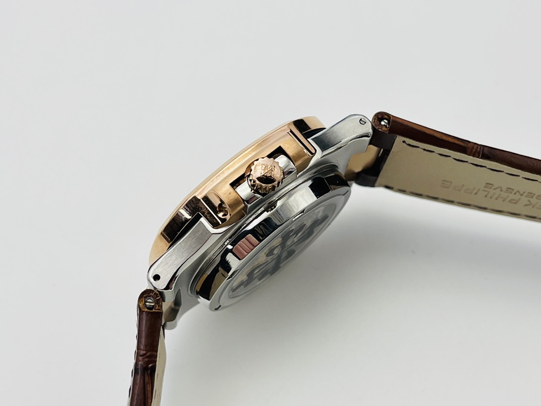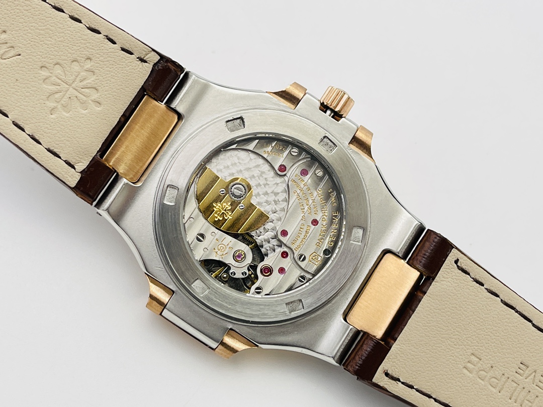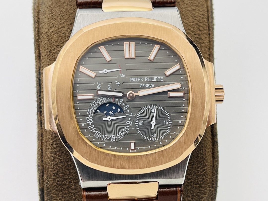 (Nautilus) 5724 (Overbearing President) Upgraded version of Pearl Top! Dynamic energy display, 7-digit calendar and moon phase, 4-digit small seconds), the same horizontal embossed pattern as the original, with fluorescent scales! 2⃣️Diameter 40 mm, 904L gold-plated stainless steel, sapphire glass mirror. The outer diamonds of models 722 and 5724 are Swarovski diamonds, which are transparent and shiny, with extraordinary temperament. As close to the original as possible within the current state of the art, this watch is ready for all occasions! PFF Factory’s ingenious work welcomes your appreciation!