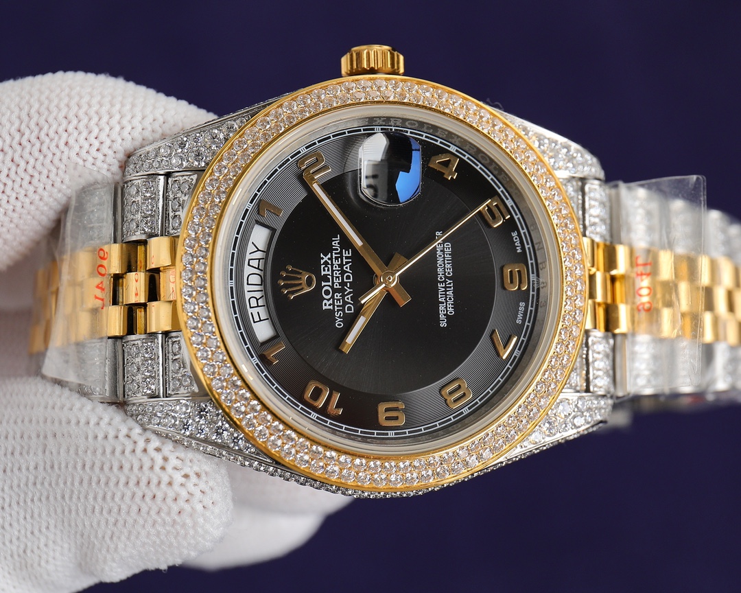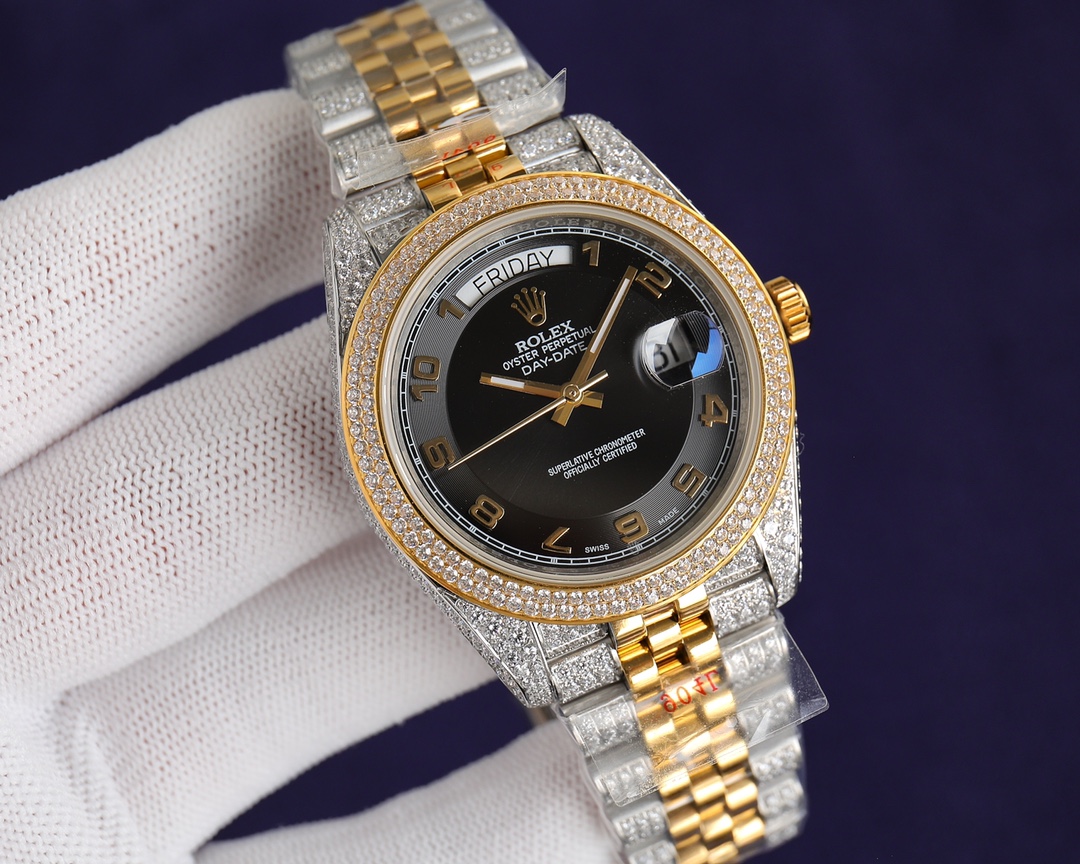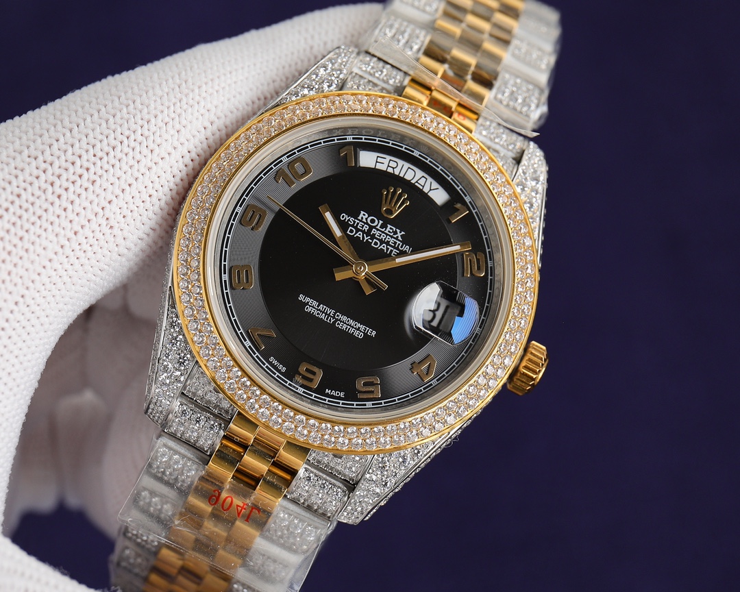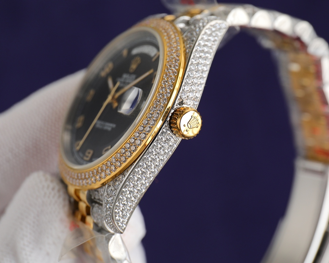 New! Player poison, perfectly restores the special version of ROLEX’s Log Series with pavé diamonds! The bezel, case, bracelet, and buckle are all densely set with top-quality Swarovski diamonds! A walking work of art, a symbol of ultimate luxury and status, the aura is clear at a glance! Really stunning! Can’t put it down ️[Movement] adopts classic etc28mm. Made of top-grade German 904L Oystersteel. Densely studded with the highest quality Swarovski diamonds, it restores the authentic, extremely luxurious and incomparable texture. [Watch strap] Made of 904L Oyster steel, the folding Oyster strap is extremely strong. The bracelet is meticulously studded with diamonds, and the effect is radiant. [Mirror] Sapphire mirror. Super luminous text, the color of the text is more delicate, creating a visual effect consistent with the original product! It is shocking and noble to use. You deserve it! Factory quality!