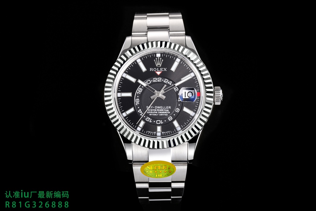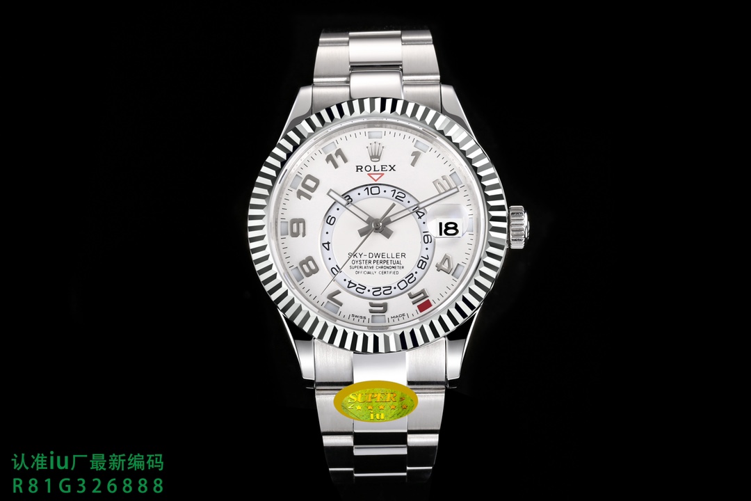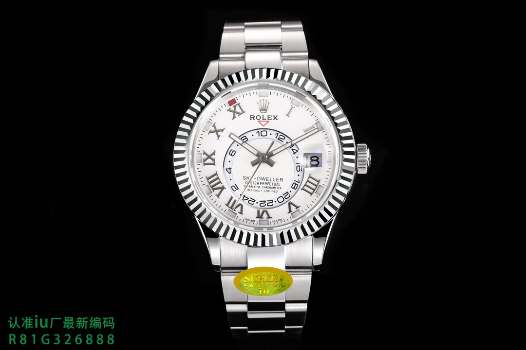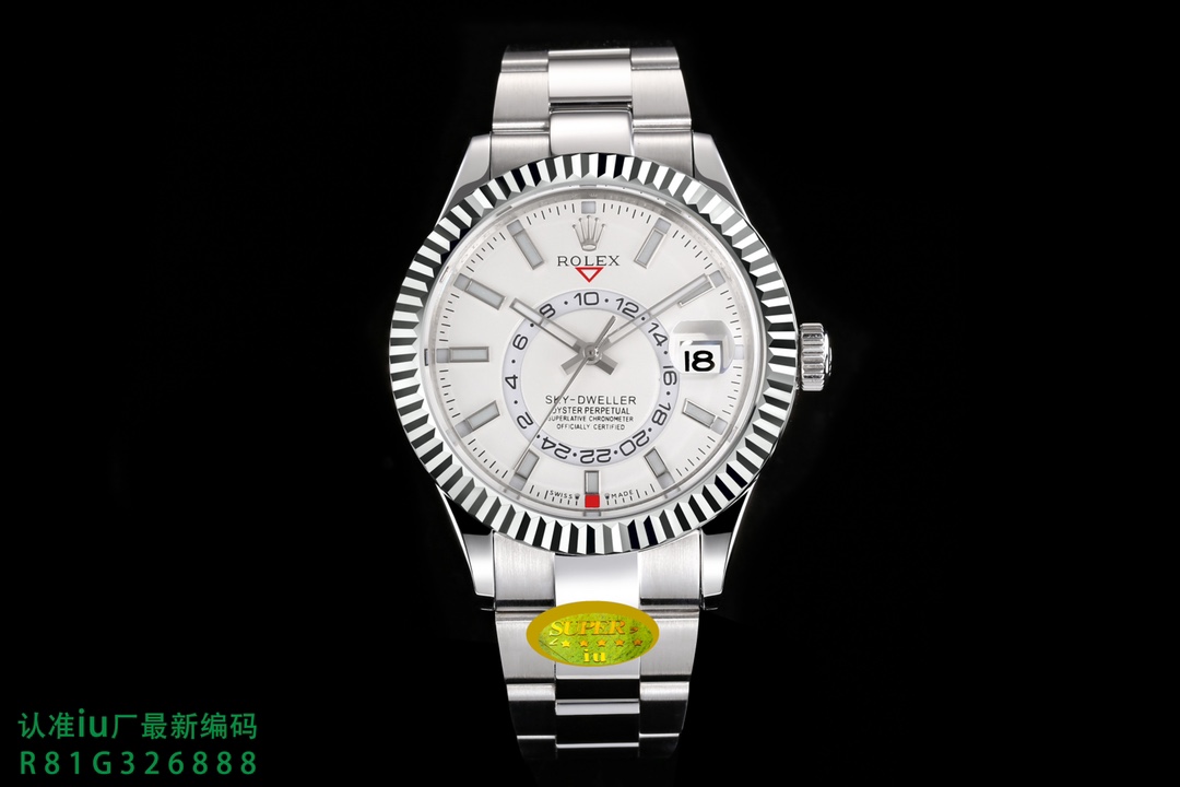 New Product [Fireworks] A new series of ROLEX Sky-Dweller “the most complex ROLEX in history” is officially launched! The true Skywalker replica is redefined with exquisite craftsmanship and correct adjustment of the watch. The 42MM Oyster case is polished with 904L stainless steel, reappearing the classic. Highly transparent sapphire mirror, small window convex lens magnifies the calendar. The bezel uses a Rolex Ring Command triangular pit pattern two-way rotating bezel, and the month function can be adjusted by rotating the outer ring. The clasp is a folding Oyster buckle with a 5MM easy-adjustable link extension system. The “charming blue” radial pattern dial of iu’s exclusive genuine model changes flexibly under the sun and on cloudy days, and has the same charm as the original. 9000 oscillations per hour exclusively modified by iu. The power reserve reaches 72 hours. The correct adjustment method that is consistent with the genuine product is in the second time zone, and the Sky-Dweller displays it through the sub-dial. It consists of two elements: the red triangle located below the LOGO, which points to the time in the second time zone, displayed in a 24-hour format. Rotate the head and pull it out to the first gear. Going up will adjust the calendar gear, and going down will adjust the hour hand (the minute hand remains stationary). Pull it to the second gear to adjust the time normally (the 24-hour bezel on the sub-dial will move accordingly) Ultra-high quality [Fireworks] [Fireworks] only produced by iu