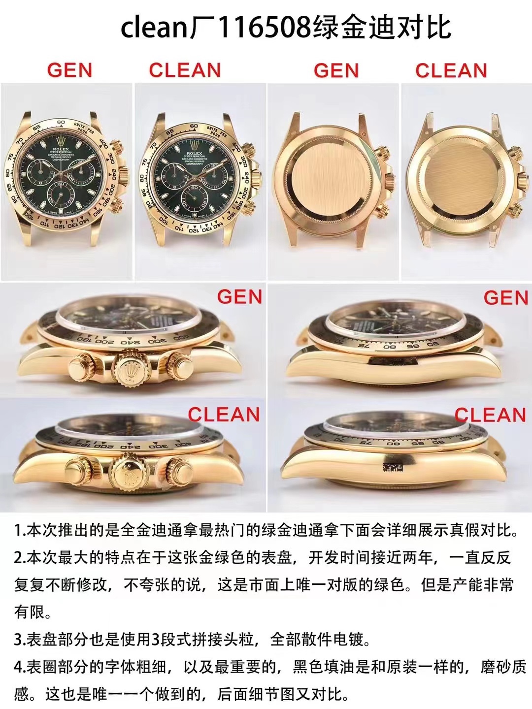New product, you are not the best, ️but having it is better than anything else ️️️️clean_C factory, shocking release, creating a new milestone, Rolex ROLEX craftsmanship to create the market’s highest top 7750 movement cosmic chronograph, three codes in one with NFC proximity card (you can watch the video) Daytona series DG all-in-one machine is perfectly embedded in the case, and the thickness reaches all the timing functions of the unprecedented movement! There are many products on the market. With many years of watchmaking experience, the clean factory has been sought after by many watch lovers and regarded as the top one! A masterpiece of great concentration, welcome to appreciate it! 9⃣️Big features: The thickness of the movement is consistent with the original product according to the latest table in 2022. 2⃣️Using the 7750 integrated movement, the quality is guaranteed, and the quality is comparable to the 4L movement of 4L stainless steel, without fear of any institutional inspection. 4⃣️The case is processed with the latest version (original 2022), and the size of the polished bright surface of the bottom cover and the curvature of the tooth edge are updated. 5⃣️The tape buckle uses a foldable buckle that is consistent with the original one. The tape model is easy to wear according to different groups of people. It is equipped with a pair of tape. 6⃣️The watch hands are upgraded again from the Buff factory. The three small seconds hands and the large second hand are all customized according to a single piece and have a solid needle cover. The needle cap is in the shape of a mushroom round head. 7⃣️Using C ceramic ring, the platinum-coated characters are upgraded to keep them from discoloration, and the font thickness is updated. 8⃣️Each scale nail is independently CNC carved, and the edges of each nail are polished by hand. The luminous material uses Swiss luminous powder and has no color difference with the original product. The end result is the closest to the original luminous vision on the market. 9⃣️The protruding height of the glass is consistent with the 2022 original version, which is different from other versions on the market (flat glass, fake at first glance)! Made of fully transparent sapphire, with small R oval edge vision. It can be touched by hand, and the effect is perfect without scratching at all. It is high-end and elegant. Only the 7750 version from the clean factory has the same detailed workmanship as the big factory and is consistent with the genuine product. Make sure that every watch case in Factory C is a quick-release watch. Only Factory C is consistent with the original version. Make sure the details and workmanship of the original version are correct. Make sure that Factory C’s watch’s unique code is 2WF426, and the strap buckle is coded 7CD. Make sure that Factory C synchronizes it with the same soft-film packaging as the original version, three codes in one, and comes with an NFC proximity card. Quality from a major manufacturer!