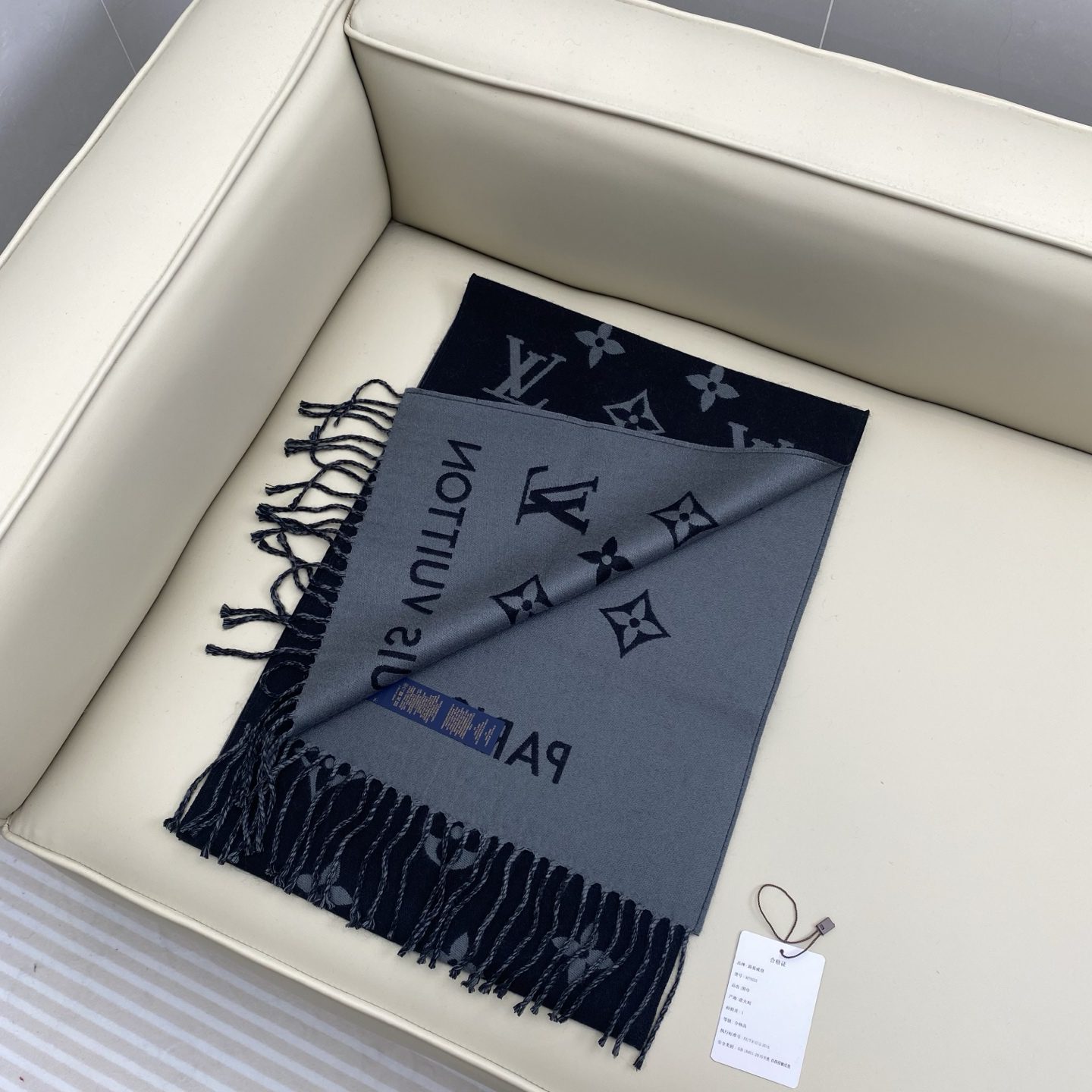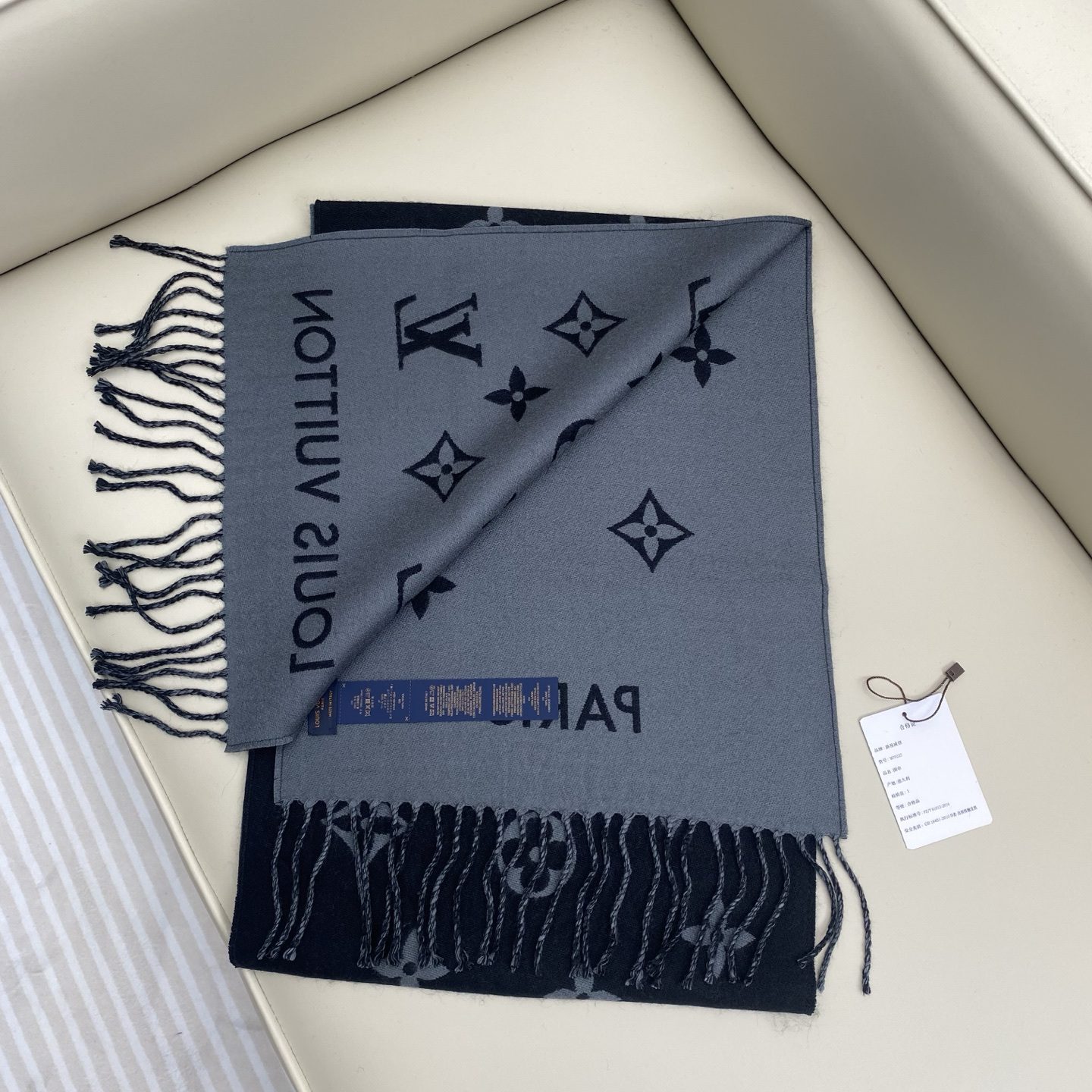 The official picture of LV Louis Vuitton men’s model, the black and gray color combination All About Monogram scarf enlarges the classic Monogram pattern to highlight the trendy style and comfortable style. Size:cmcm