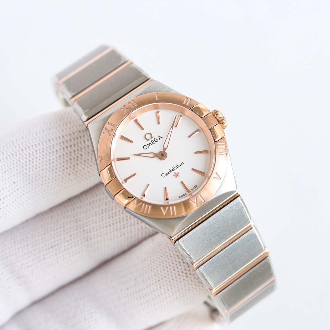 Omega Constellation Series 28mm Swiss Quartz Watch. The Roman scale on the ring and the observatory on the bottom cover are comparable to the original version. Equipped with an original imported Swiss movement, it is strong, stable and trouble-free, giving customers a perfect experience of precision and reliability. The style is gentle and charming, and the workmanship is exquisite. The most beautiful zodiac sign, the first choice for ladies!
