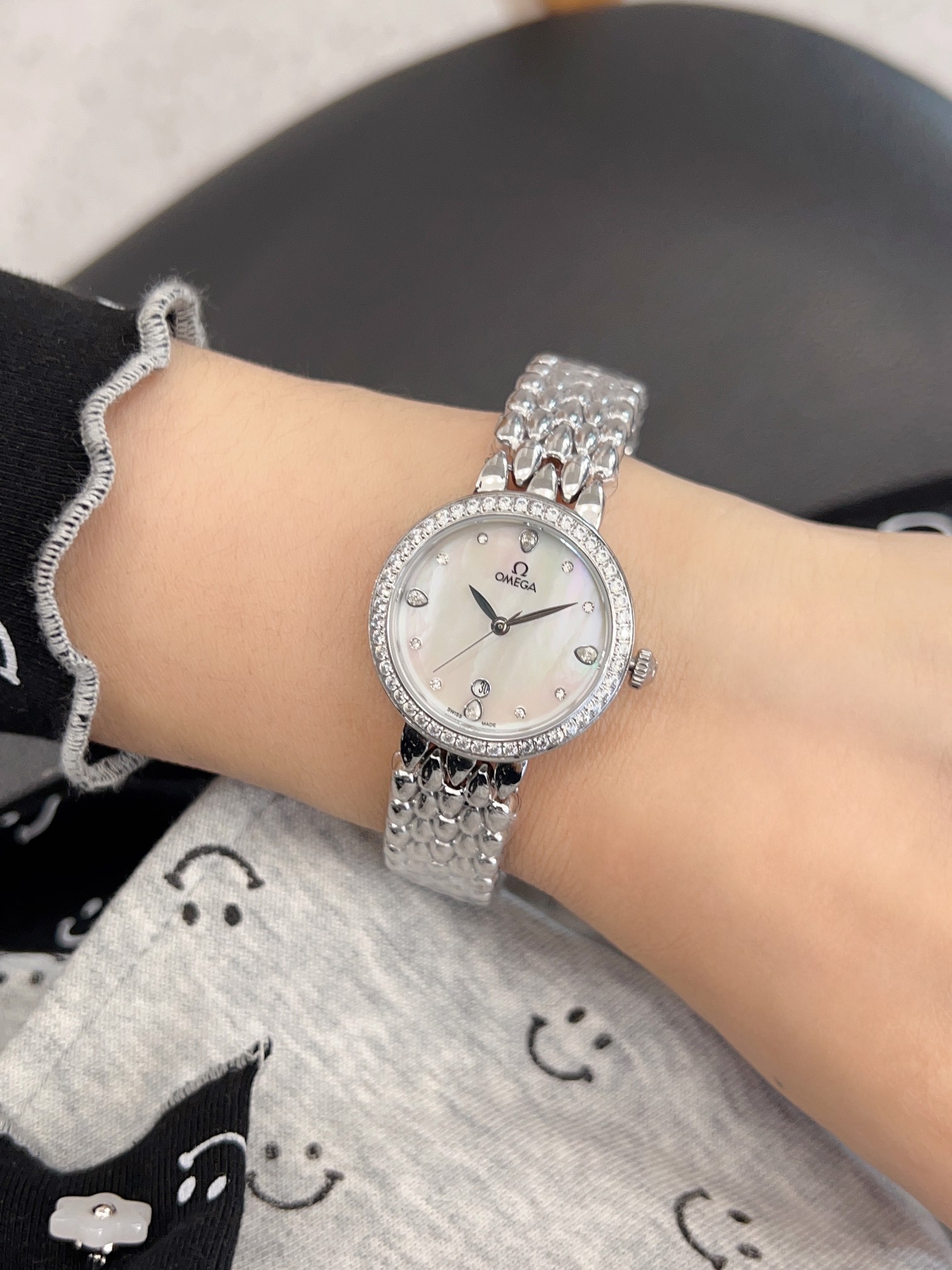 OMEGA exquisite goddess water drop series watch. The exquisite and beautiful design makes your beauty everywhere. It also combines gorgeousness and classics to create a stunning masterpiece. The dial is fresh and elegant, and the color style will decorate your wrist gorgeously, giving you a romantic feeling.