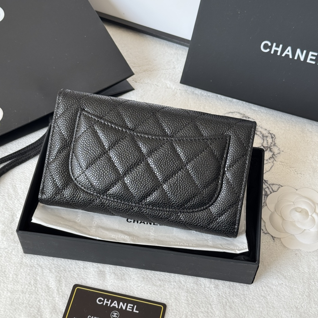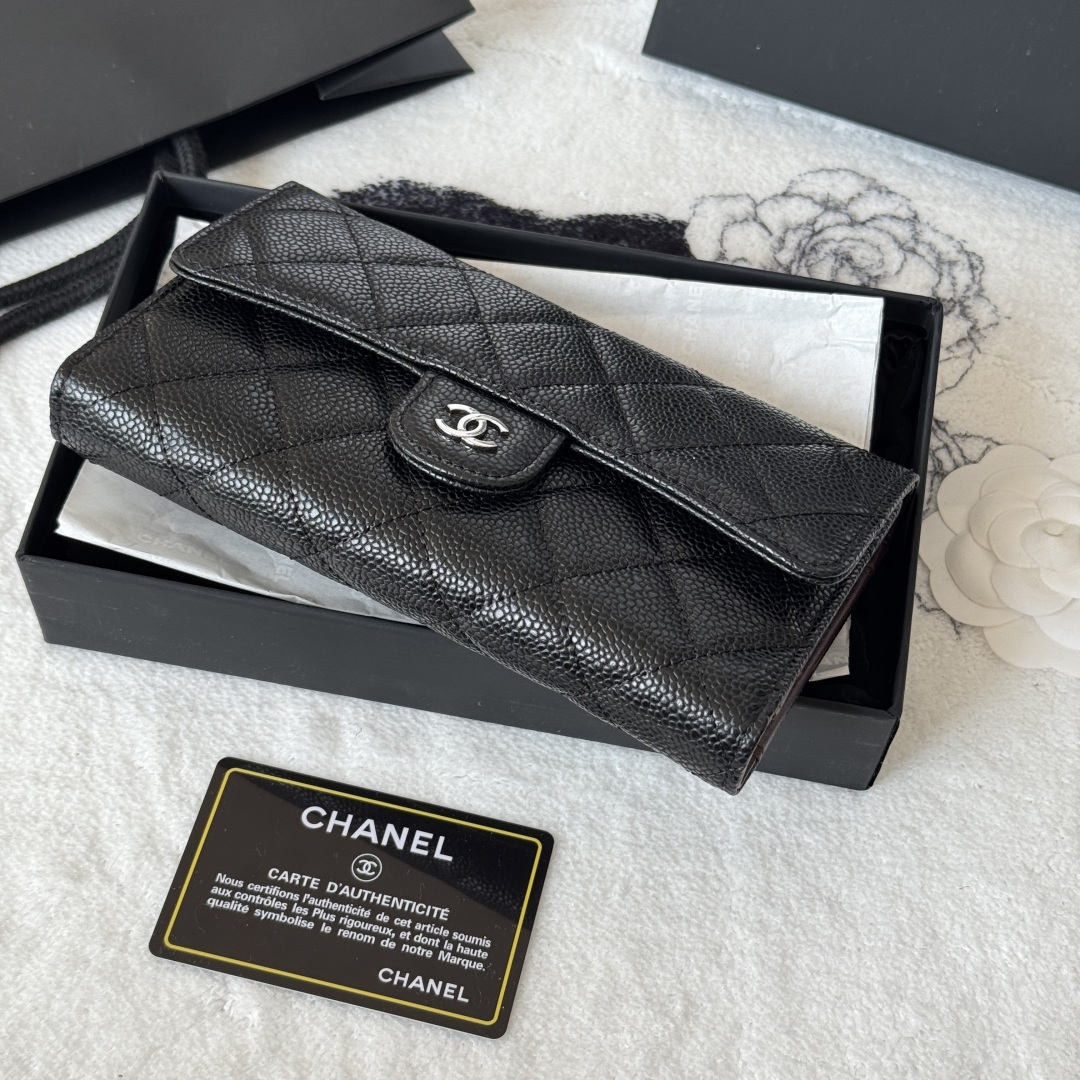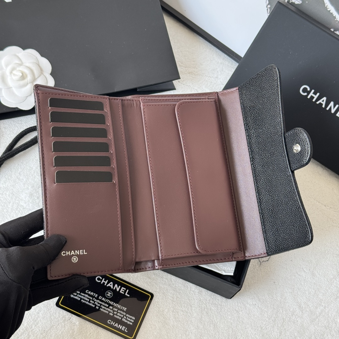 Home BAG Women's Bags Chanel Bag Chanel Original Chanel Chanel style buttoned caviar leather wallet long tri-fold wallet with lining