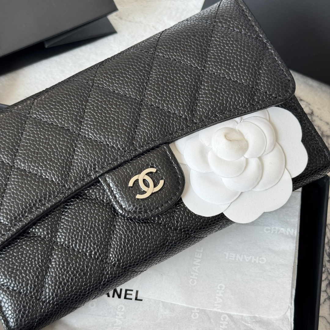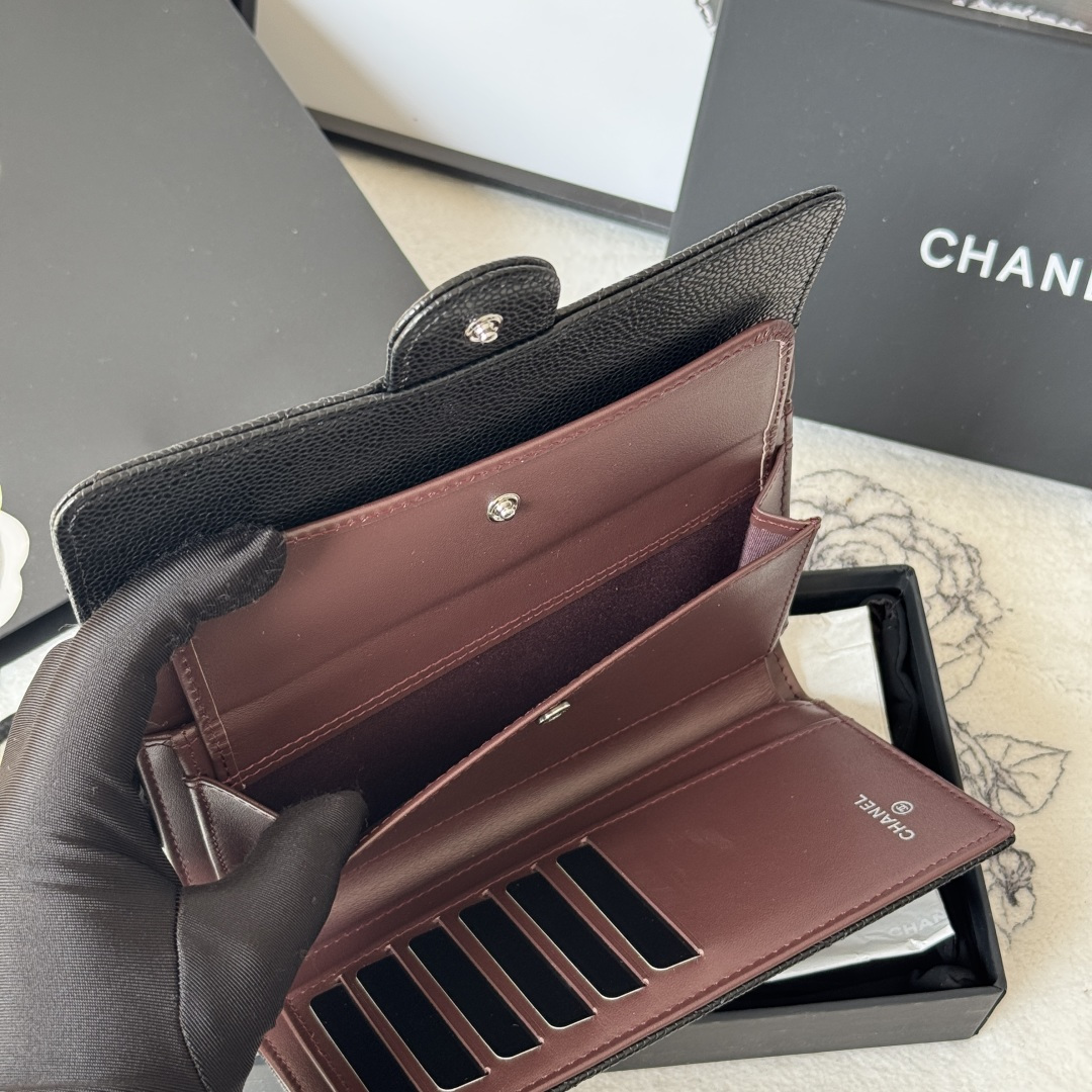 Bag Chanel Original Chanel Chanel style buttoned caviar leather wallet long tri-fold wallet with lining