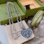 p ????????????????????Gucci necklace 2026 latest chain with higher grade, same style as Anger Forest series double G classic peach heart necklace series, retro silver necklace chain length 60 cm, adjustable length details, distressed version, non-market glossy version, this one has been out, best-selling model in Gucci, very good to match with trendy clothes????