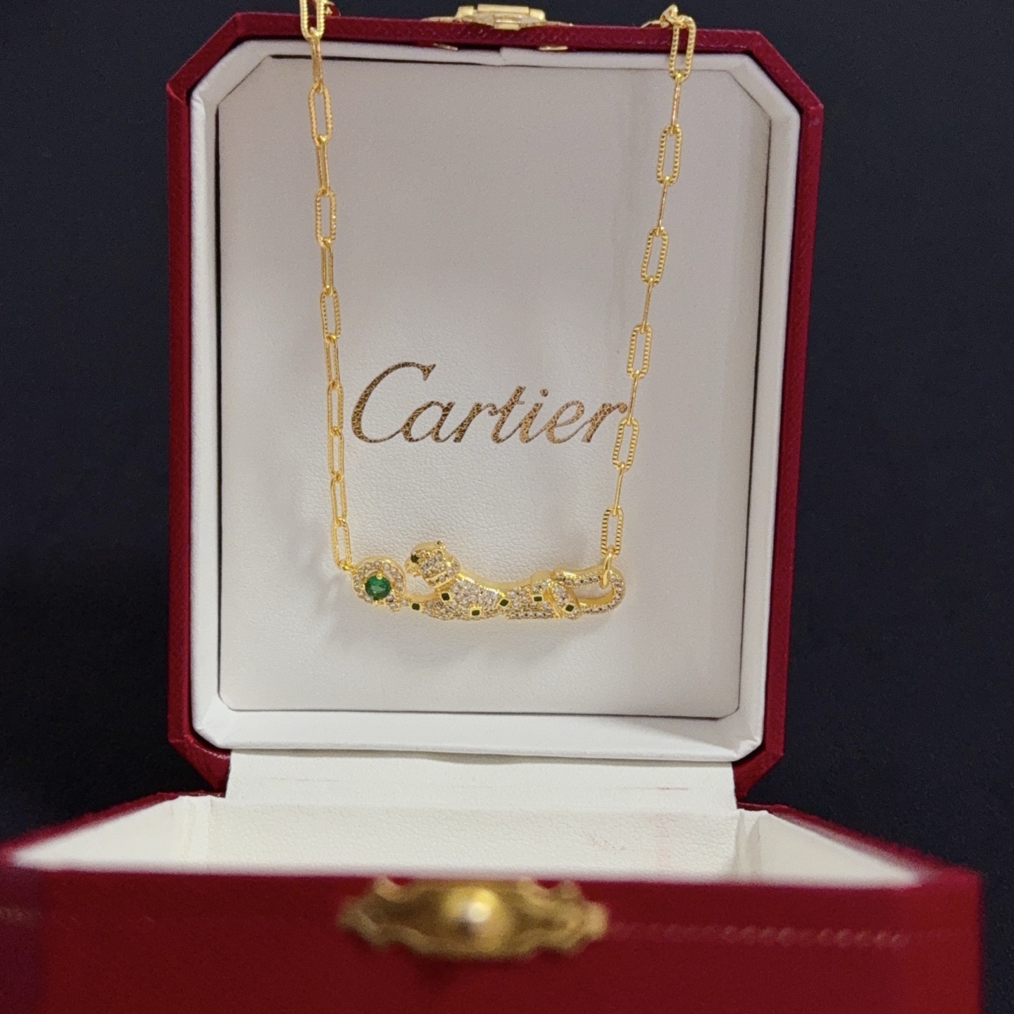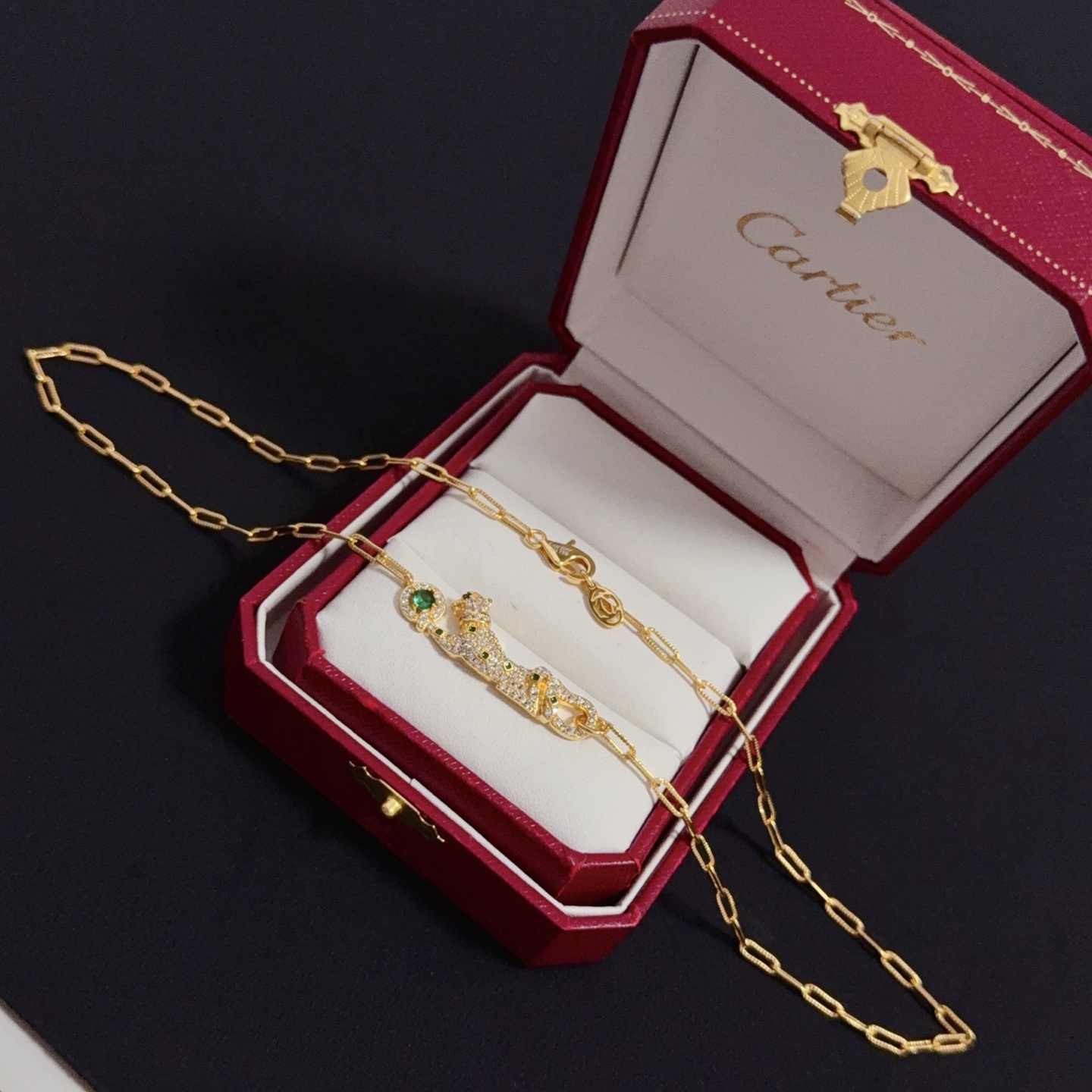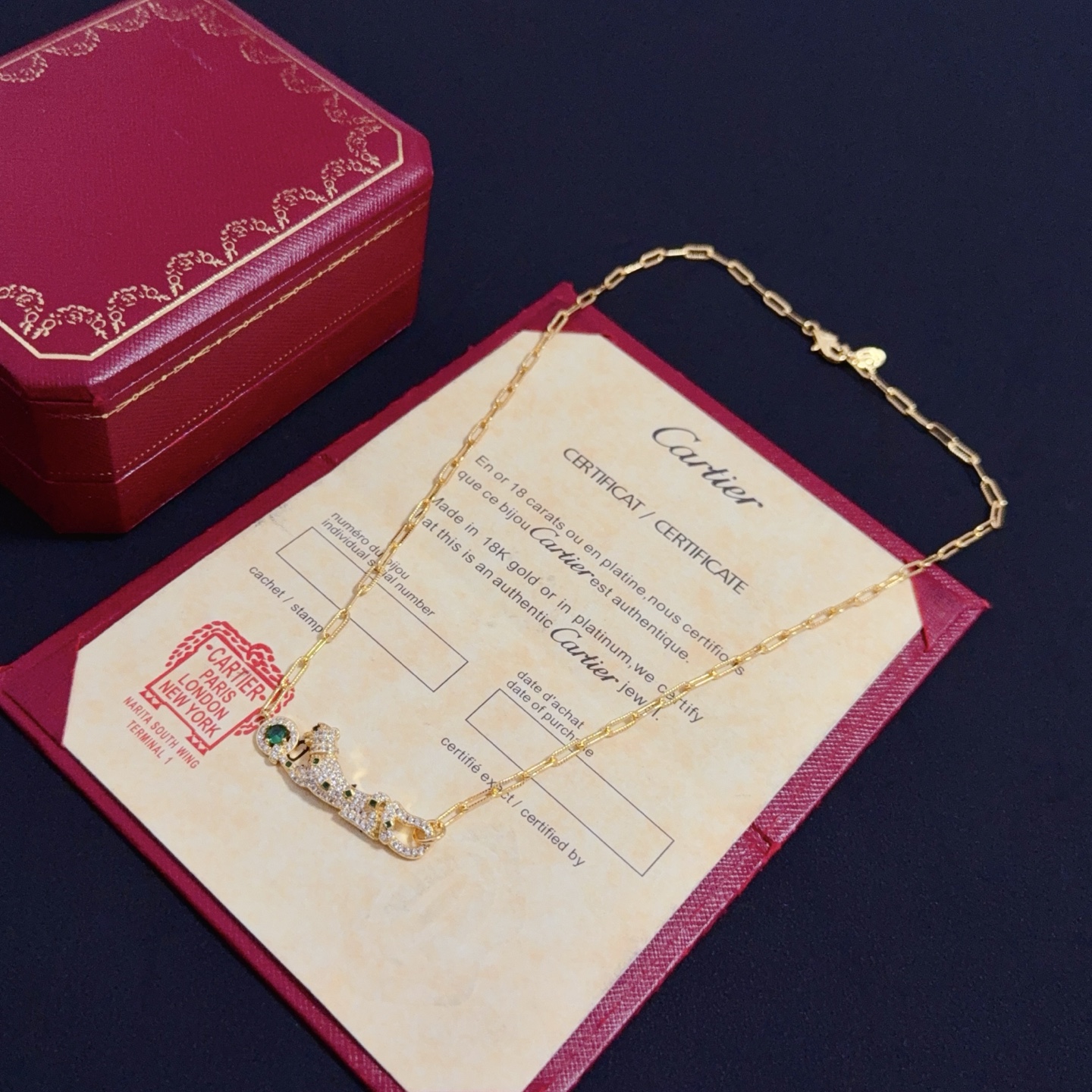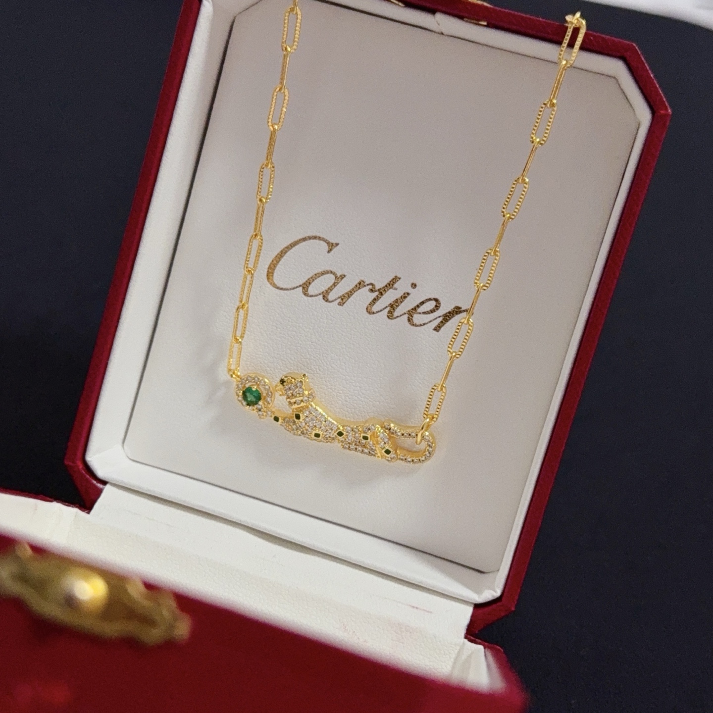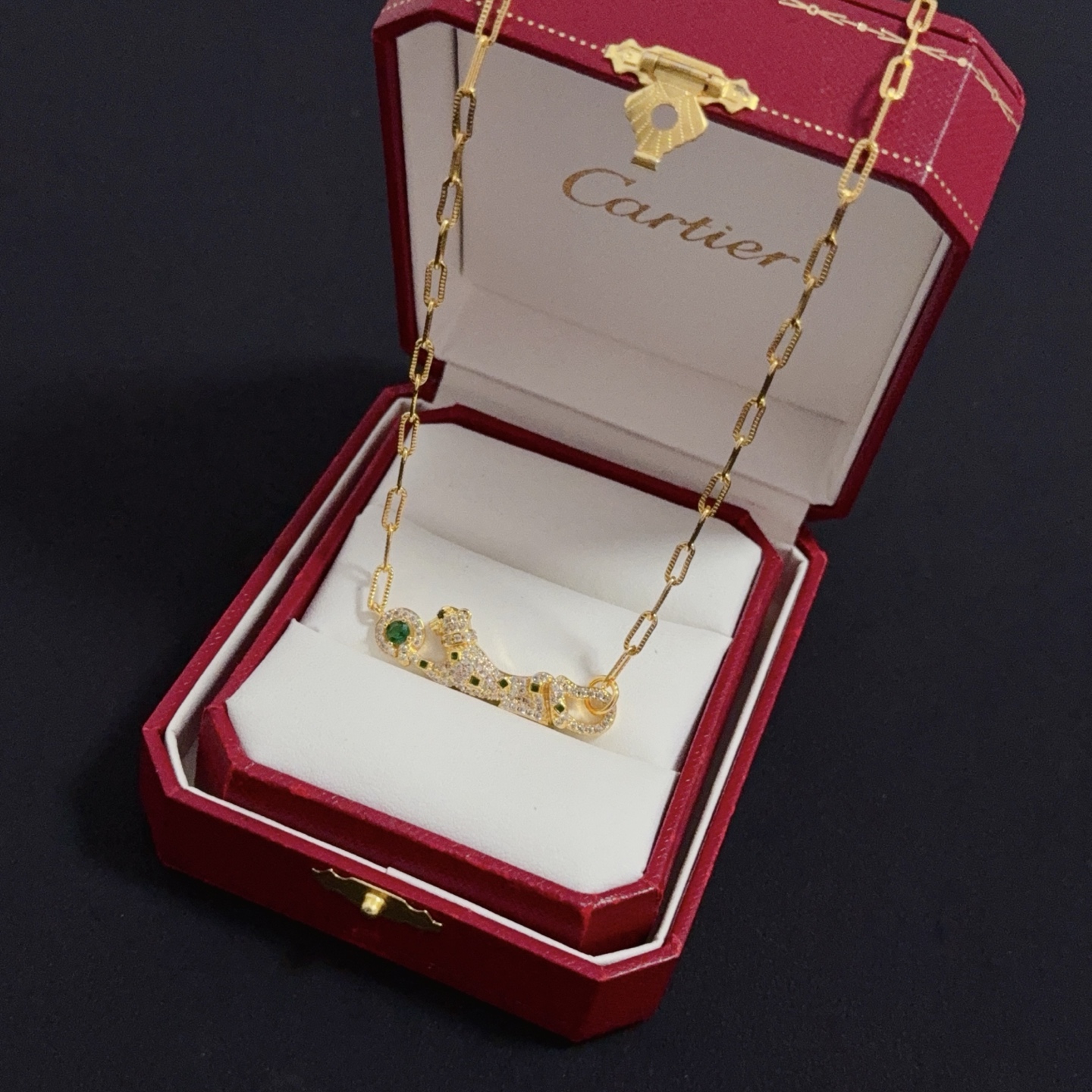 Home ACCESSORIES Cartier Diamond Cheetah Necklace High-End Customized Version Diamond-Inlaid Craftsmanshi V Gold Material Classic