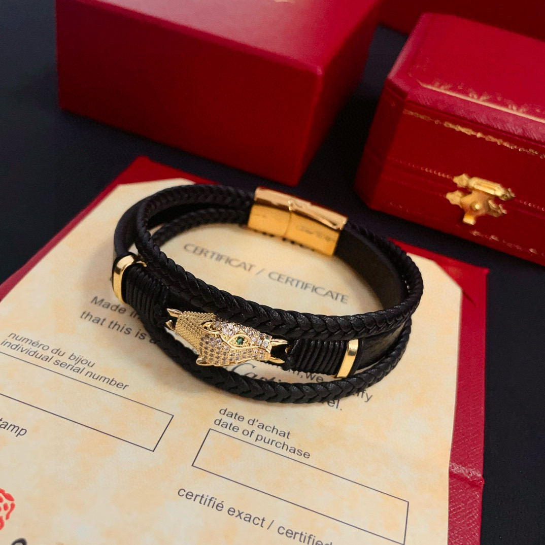 p Cartier Leopard Head Diamond Leather Rope Bracelet Star Internet Celebrity Fellow Douyin Xiaohongshu Popular High-end Customized Version Diamond-Inlaid Craftsmanship V Gold Material Classic and Fashionable Style Reconstruct the Aesthetics of Love with Sharp Lines! Breaking the rules, the diamond-encrusted design actually achieves the ceiling of high-end sense – there is no need for flashy accumulation, love should be as pure as ever. Cartier is loved by many celebrities and Internet celebrities. The Leopard series bracelet is absolutely a timeless classic, and it is not limited to men and women, and there is no age limit! Wear it and you are the protagonist!
