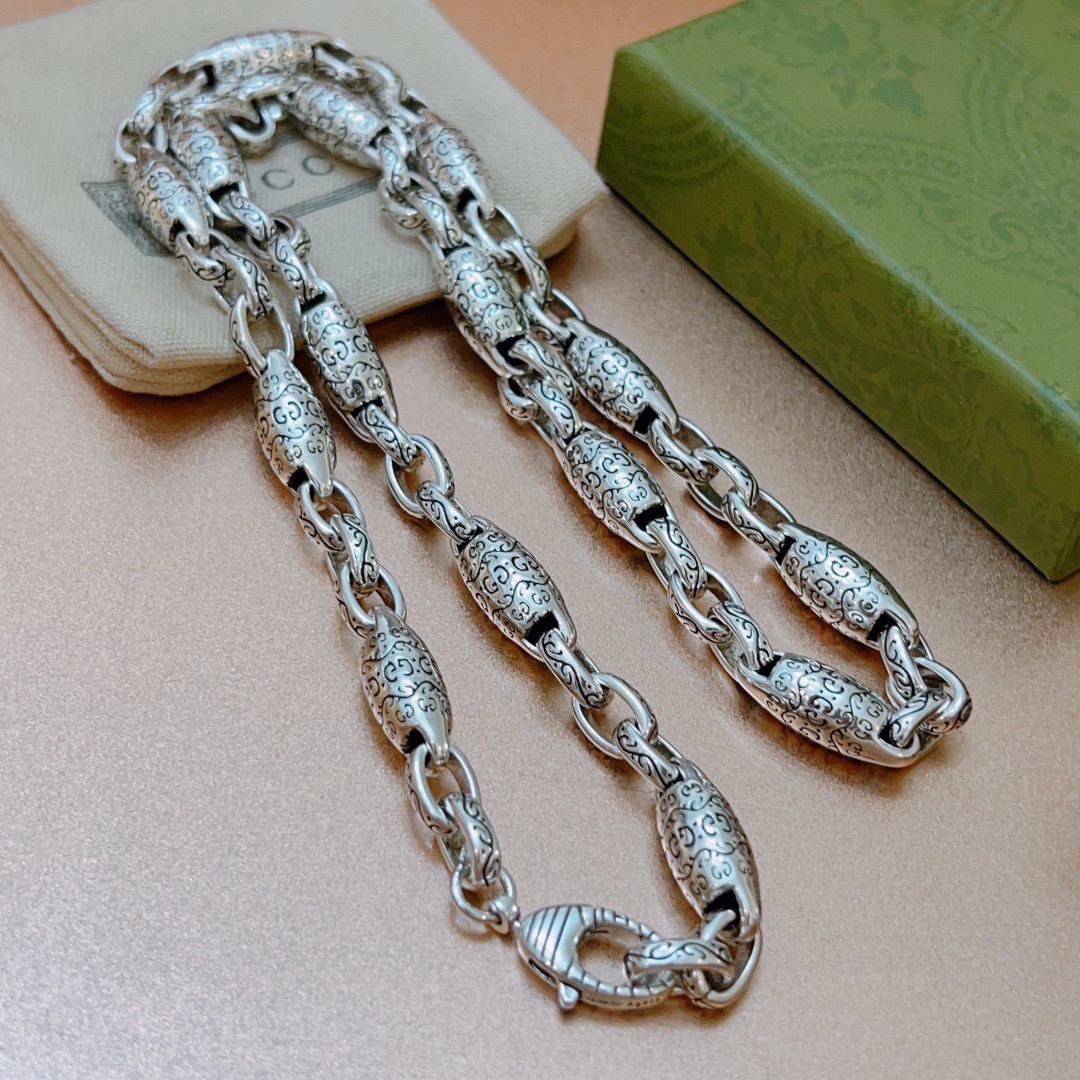 p (Luxury model)𝐆𝐮𝐜𝐜𝐢The latest chain of Gucci necklace is of higher quality and is the same style as that of celebrities. It took more than a month to make it. It is exquisitely crafted and handmade to create the perfect latest style. Anger Forest series double G Gucci necklace chain length 60 cm. The length can be changed. Details are distressed. Non-market glossy version. This one has been on the market. It is a best-selling model in Gucci. It goes well with trendy clothes🥿