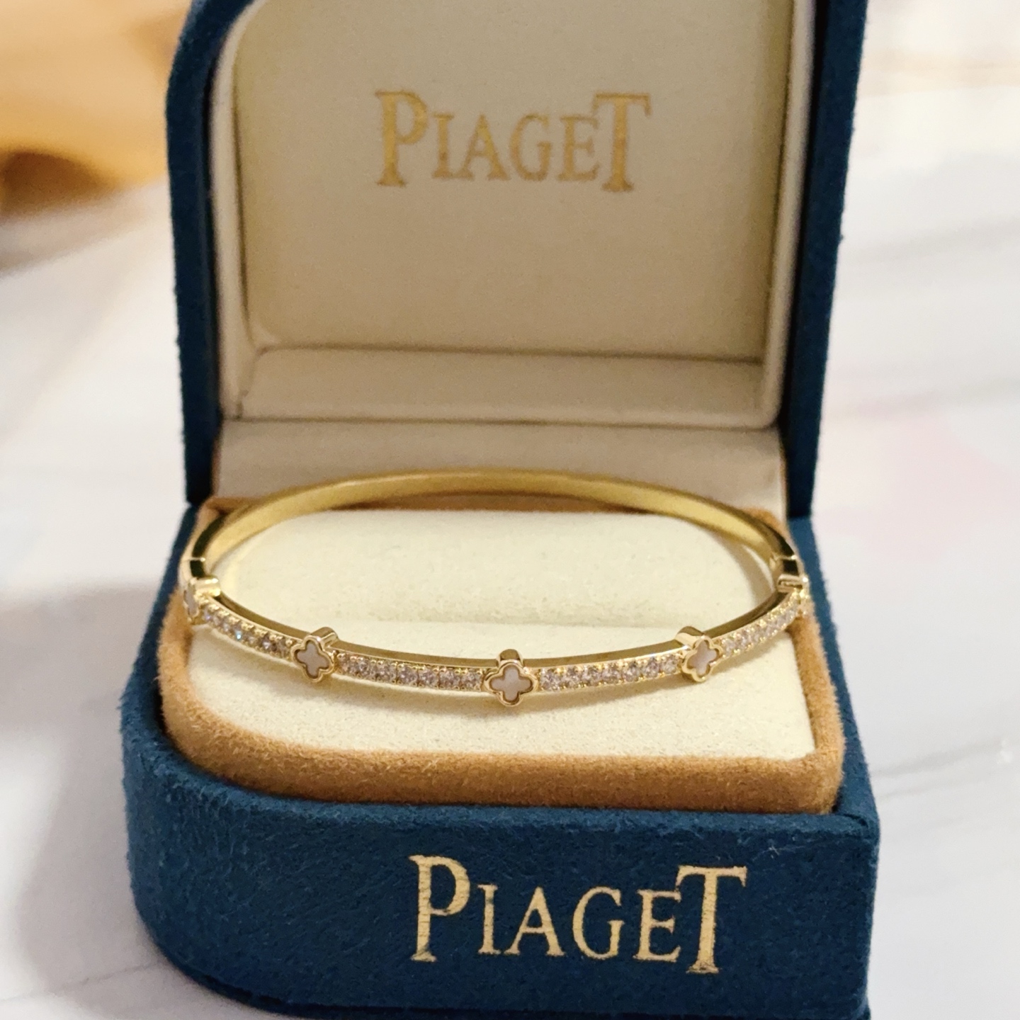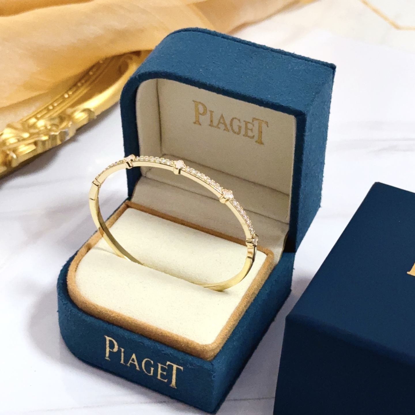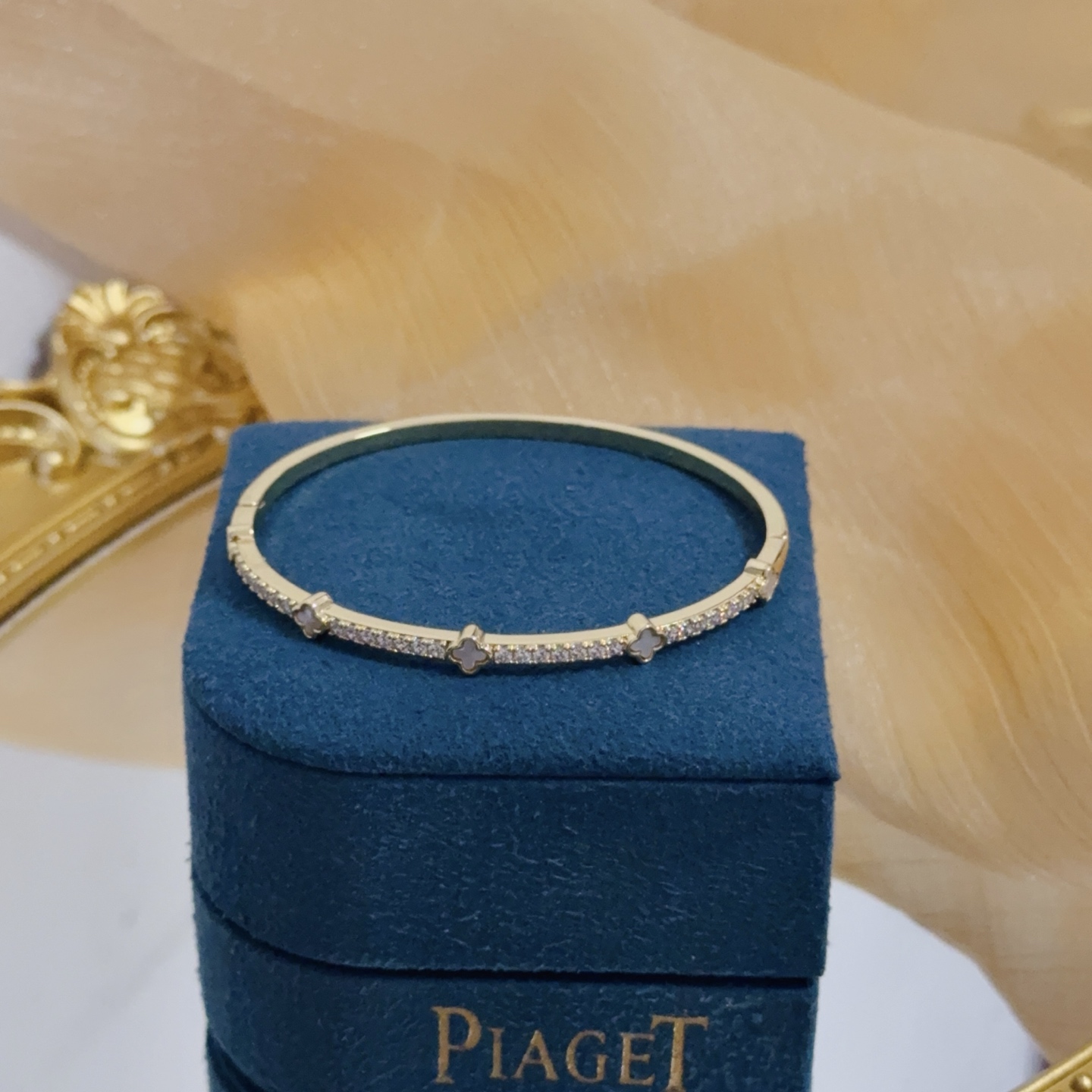 Piaget bracelet is a high-end customized version with diamond inlaid craftsmanship and V-gold material, showing luxury in every detail. The metallic texture and texture complement each other and shine under the light, embodying luxury and elegance. Whether it is a business occasion or a sweet date, it can highlight sophistication and elegance. It is so beautiful to have on hand. It is definitely your dream bracelet.