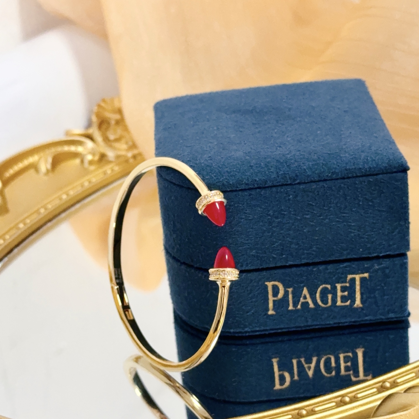 Piaget bracelet is a high-end customized version with diamond inlaid craftsmanship and V-gold material, showing luxury in every detail. The metallic texture and texture complement each other and shine under the light, embodying luxury and elegance. Whether it is a business occasion or a sweet date, it can highlight sophistication and elegance. It is so beautiful to have on hand. It is definitely your dream bracelet.