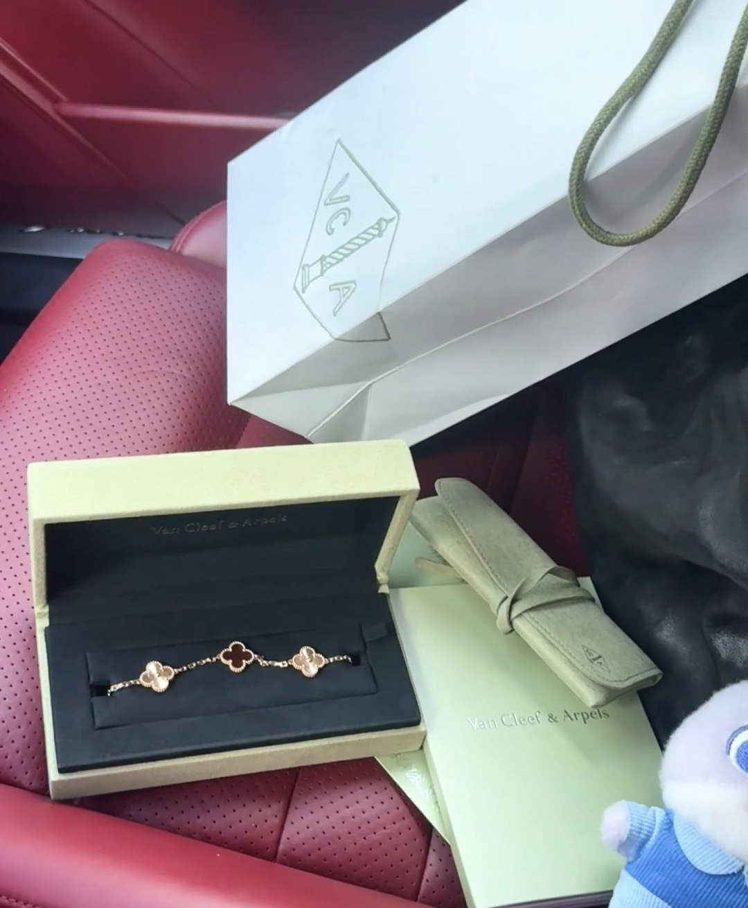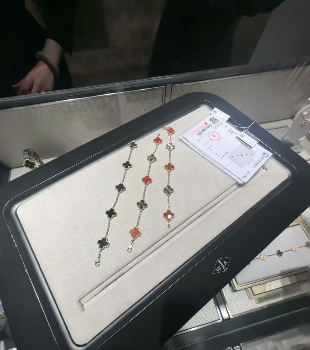 V gold material VCA four-leaf clover Van Cleef & Arels transarent crystal five-leaf clover bracelet
