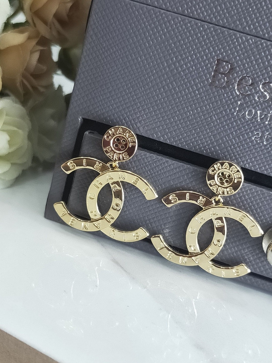 p45 is selling like crazy, super popular fragrance Chanel new button letter earrings, must-have decorative beauty, elegant accessory for ladies, retro brass texture. The button letter shape is very popular among girls, bringing beauty to a new level. The drifting beauty of the buttons and the crystals are Bling, sweet and fashionable.
