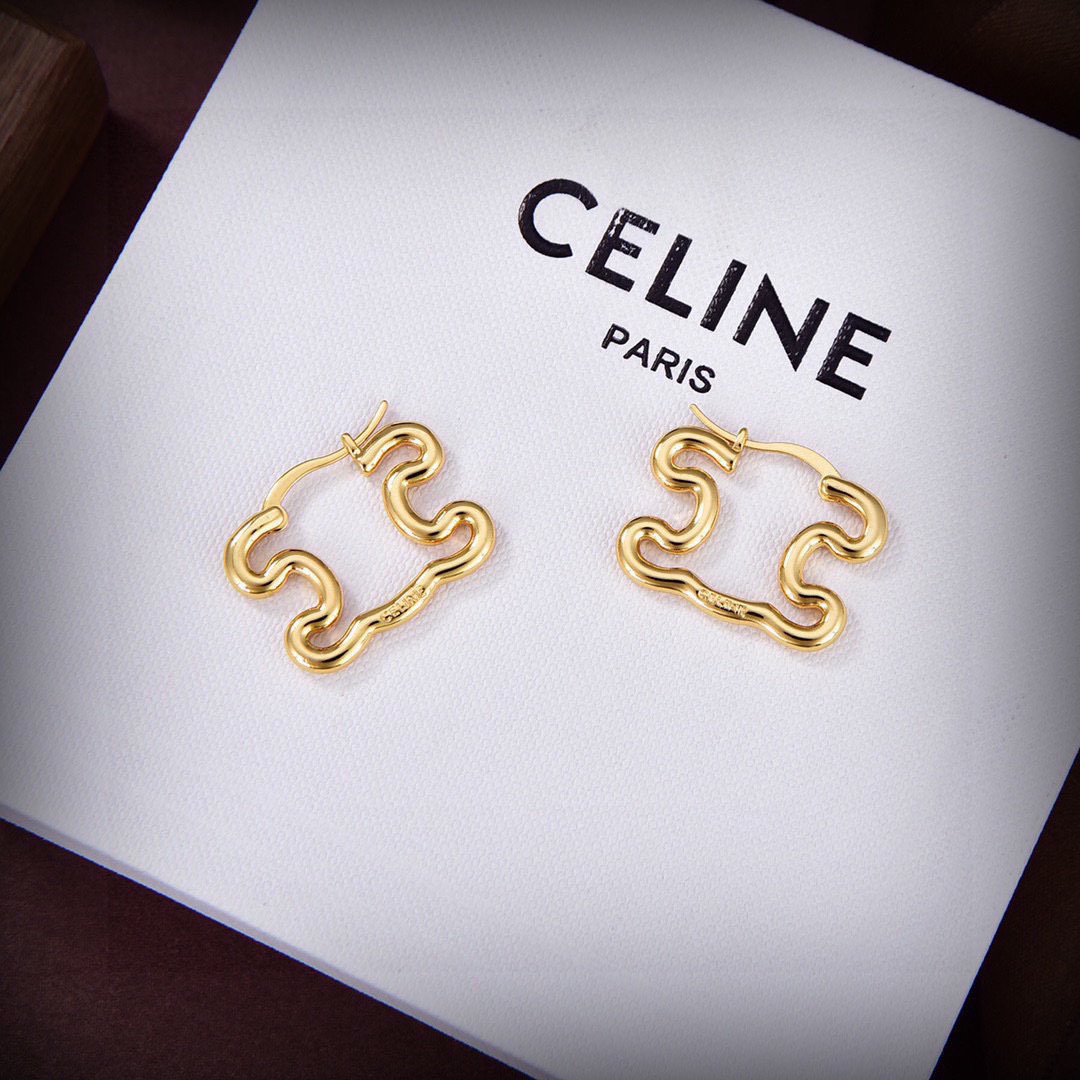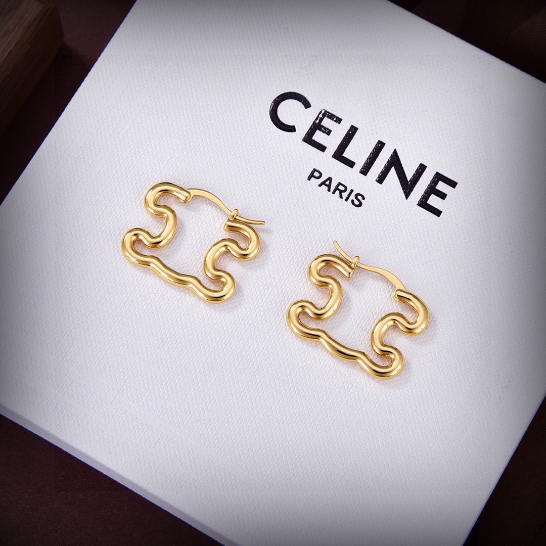 p48️Celine new earrings pRECLOUS new product Simple fashionable earrings counter consistent brass material electroplated K gold hot model shipping unique design avant-garde beauty must-have! ️