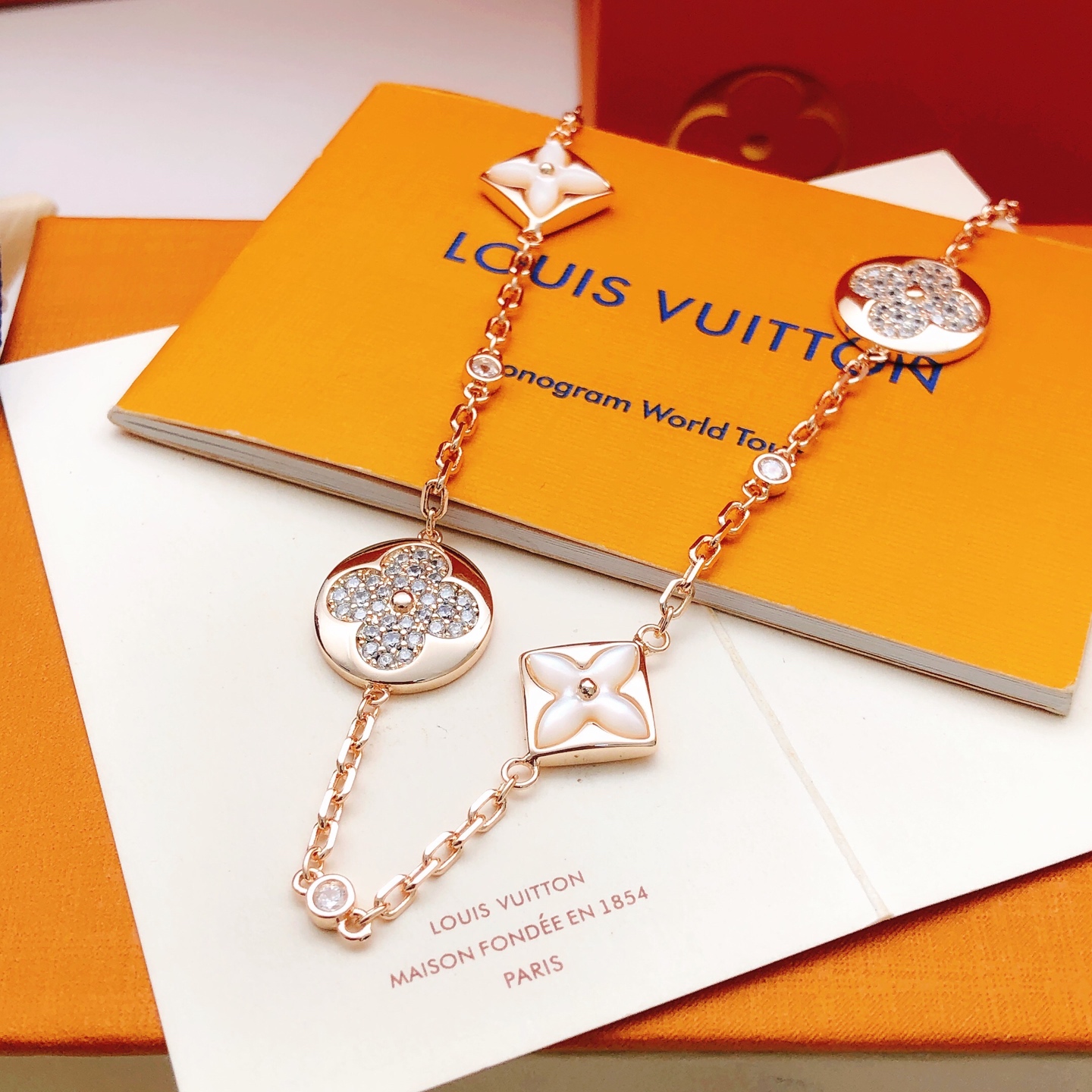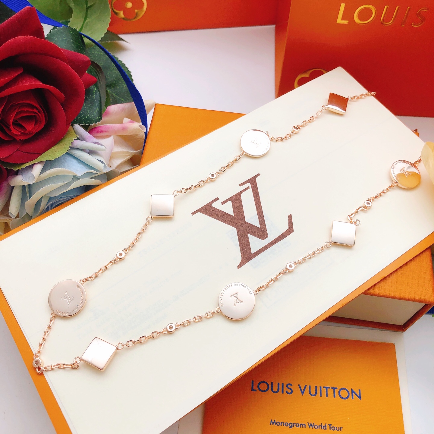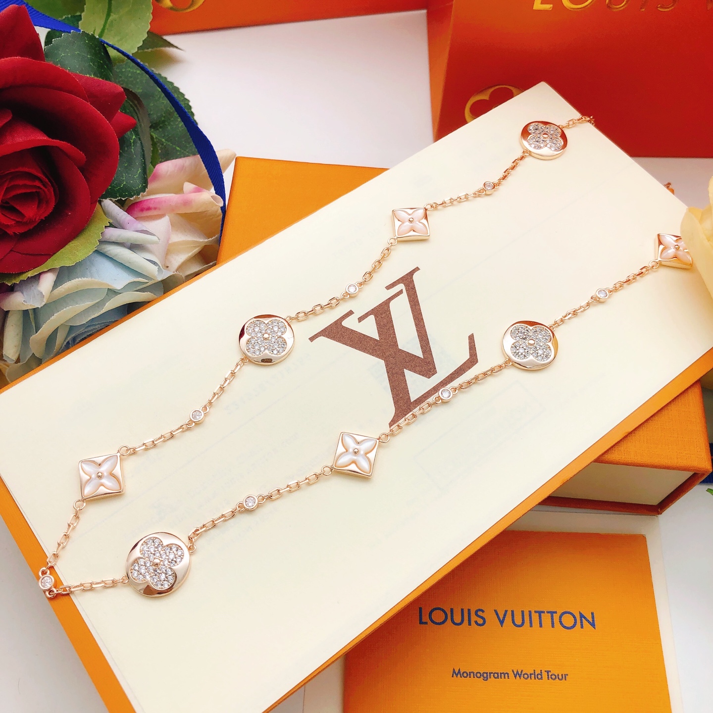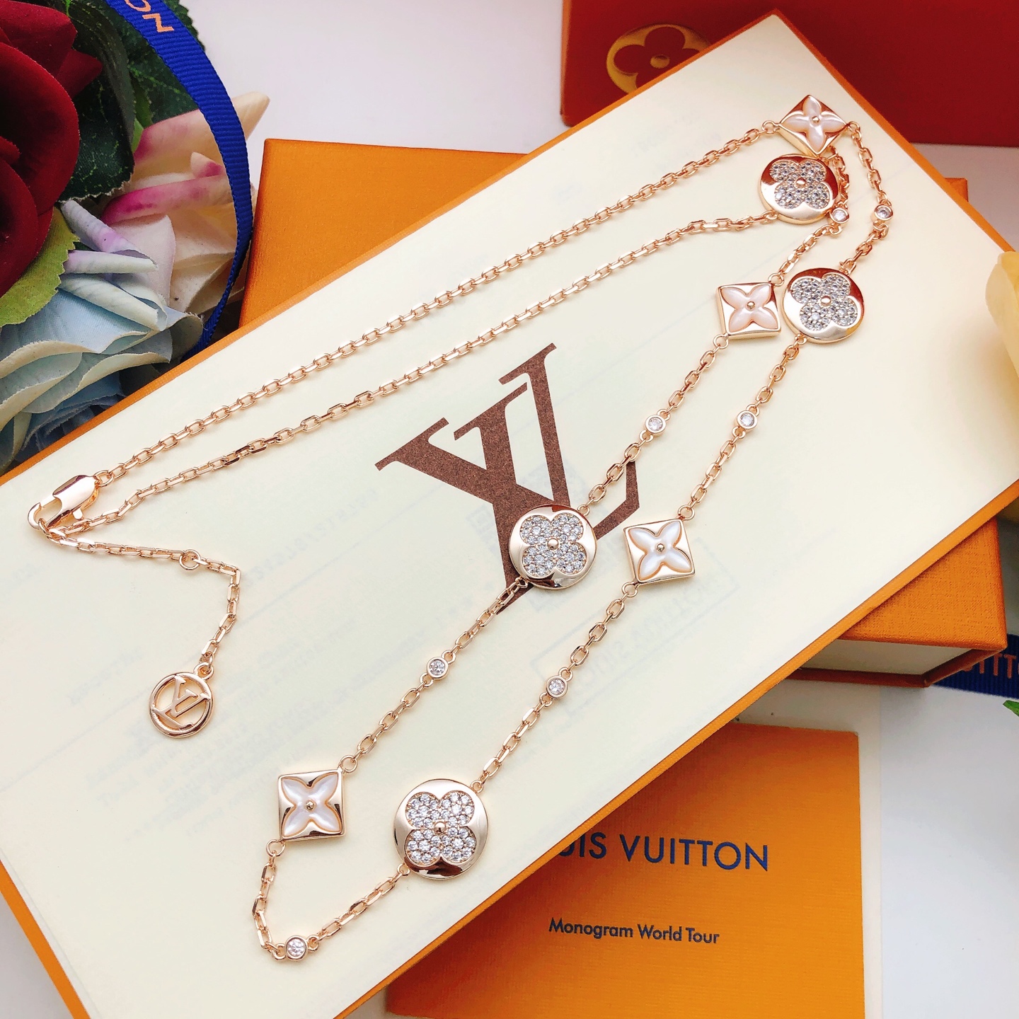 p5 number LXL03 [Lv’s latest rose gold and white mother-of-pearl diamond sweater chain]