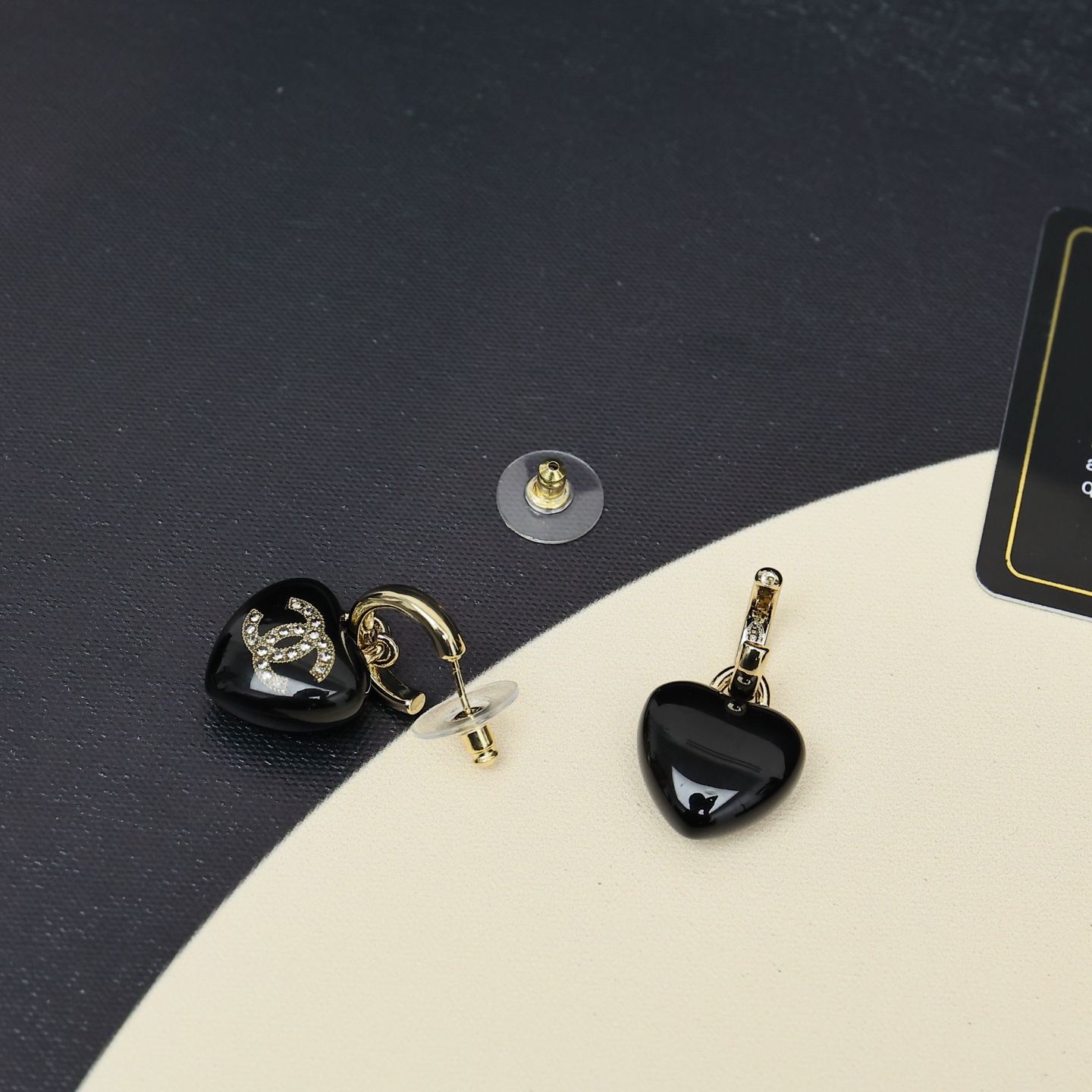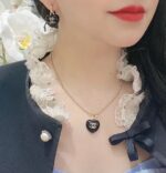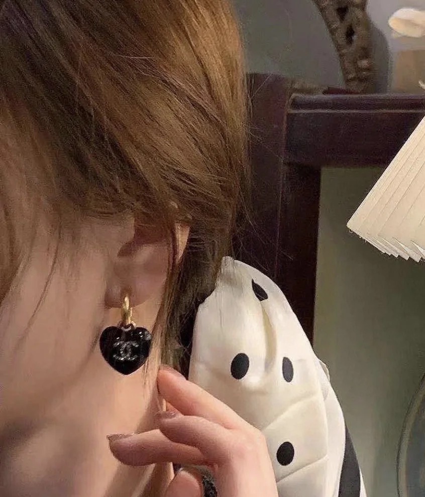 p50 Chanel spade heart earrings made of black acrylic + metal inlaid with rhinestones, the classic double C logo is highly recognizable. Retro design, light to wear, easy to wear in daily or formal occasions. The shape of the spade heart is playful and elegant. It is versatile and easy to wear. It is one of Chanel’s most popular items. It is often paired with necklaces from the same series, giving it a perfect temperament.