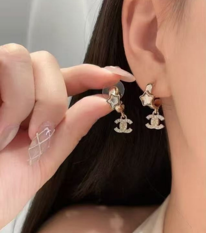 p50 [Fragrant double c five-pointed star diamond letter stud earrings] 25B autumn and winter latest style, the latest style is the first to be discovered on the Internet ️Wow, the star letter combination is so beautiful, a must-have item this season! Fairy level! Love it so much️ It’s such a heart-pounding feeling! The Swarovski crystals + specific five-pointed star crystals on the upper ear are very delicate and versatile for everyday use! Don’t say anything, keep it to yourself for now️