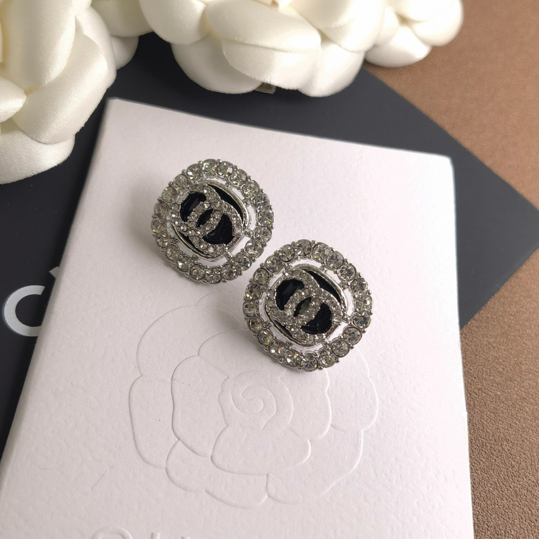 p50Chanel Chanel’s latest crystal diamond black onyx letter stud earrings 925 sterling silver needle best-selling model, the highest version on the market! Counter 1:1 style mold opening, counter original version with the same material. Xiaoxiang classic original logo printed with Chanel, a must-have for the goddess