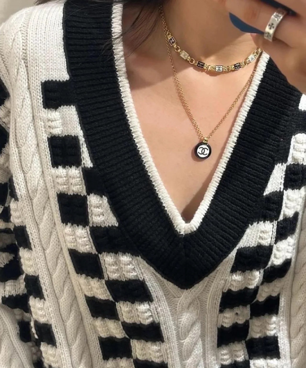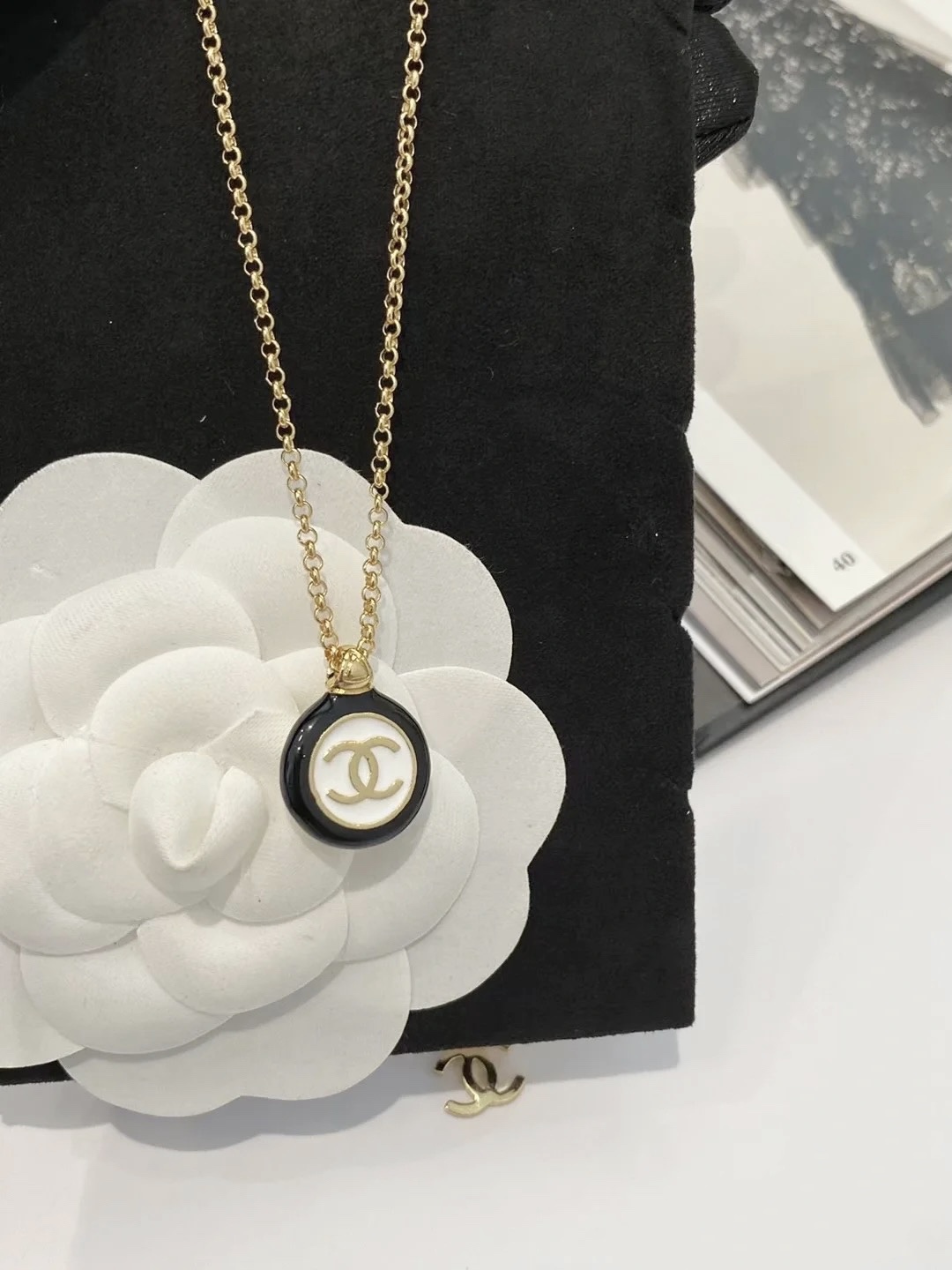 p55 Chanel necklaces are hot selling and the new CHAN 24 black and white enamel double C button necklace🤑classic color scheme features the brand’s iconic double C letters. Elegant and elegant with a touch of retro charm