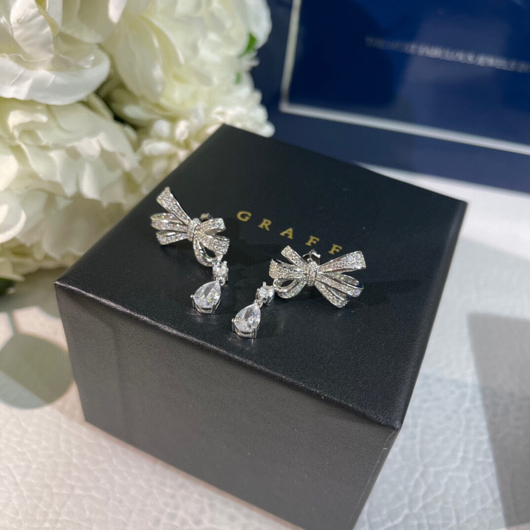 p55 mainly recommends the heart-stirring Graff high-end marquise crystal diamond bow water drop earrings. The earrings are elegant and sweet. The earrings are lifelike, with exquisite cutting and original logo printing. High-end customized high-carbon diamonds bling bling. Graceful design, luxurious and noble, comfortable to wear. Generous, beautiful, high-end and luxurious. A must-have for dinner parties.