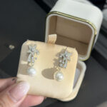 p55 [Seiko Version] New Chanel Comet Tassel Pearl Earrings Pentagram Tassel Unique Design Concept Super Exquisite One Electroplated Platinum Craft Counter Version One-to-One Quality Diamond-Inlaid Chanel Earrings Must-Have for Goddess Super Slimming White Gold