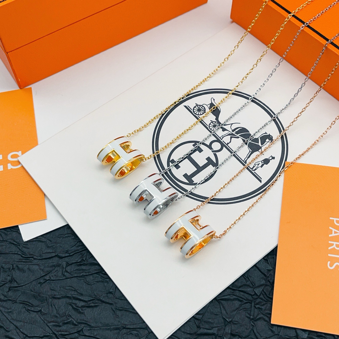 p55HX053 [He@mes latest white enamel silver large necklace] consistent Zp brass material, very photogenic‼ ️The design is very special and worth buying the high-end handmade workshop series