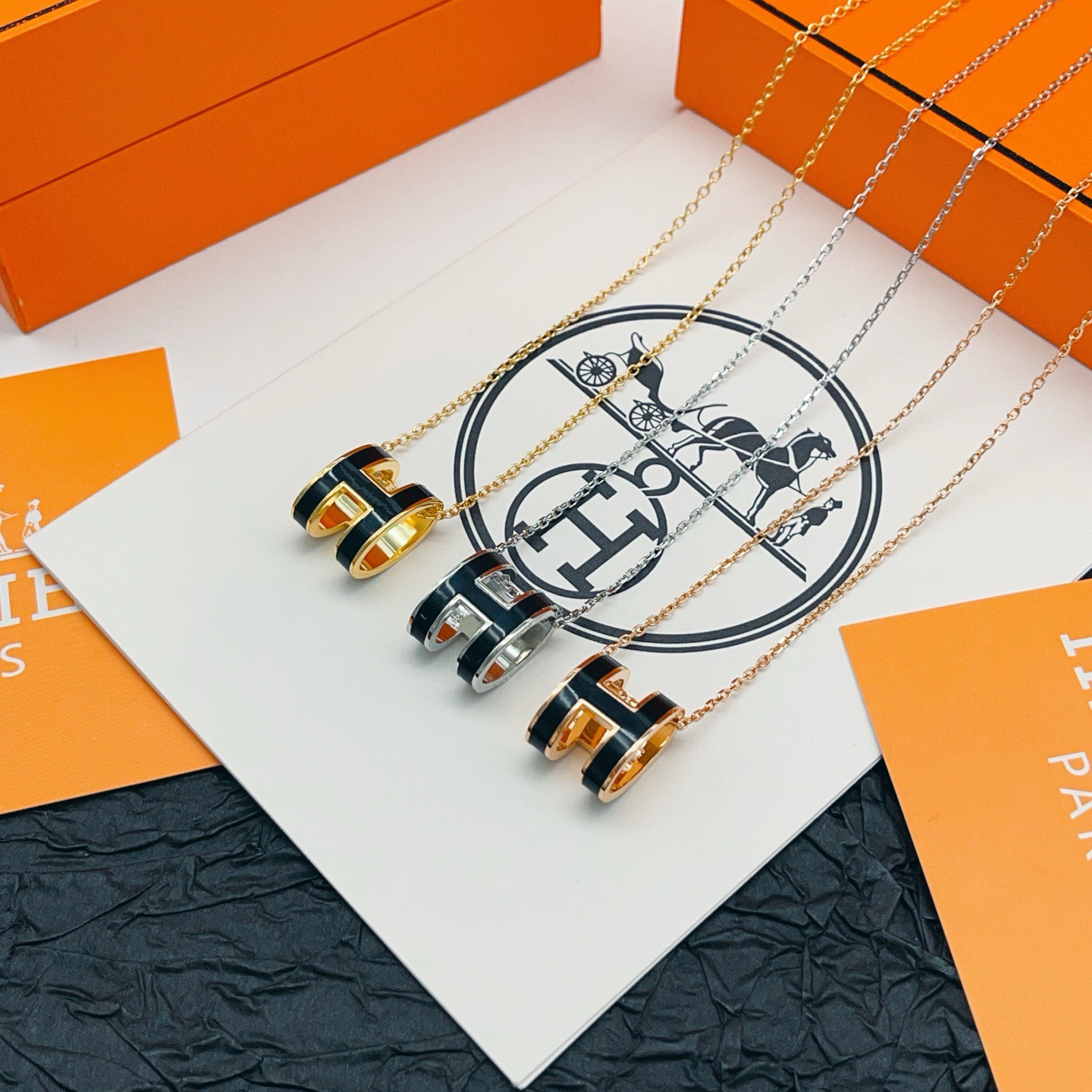 p55HX055 [He@mes latest black enamel silver large necklace] consistent Zp brass material, very photogenic‼ ️The design is very special and worth buying the high-end handmade workshop series