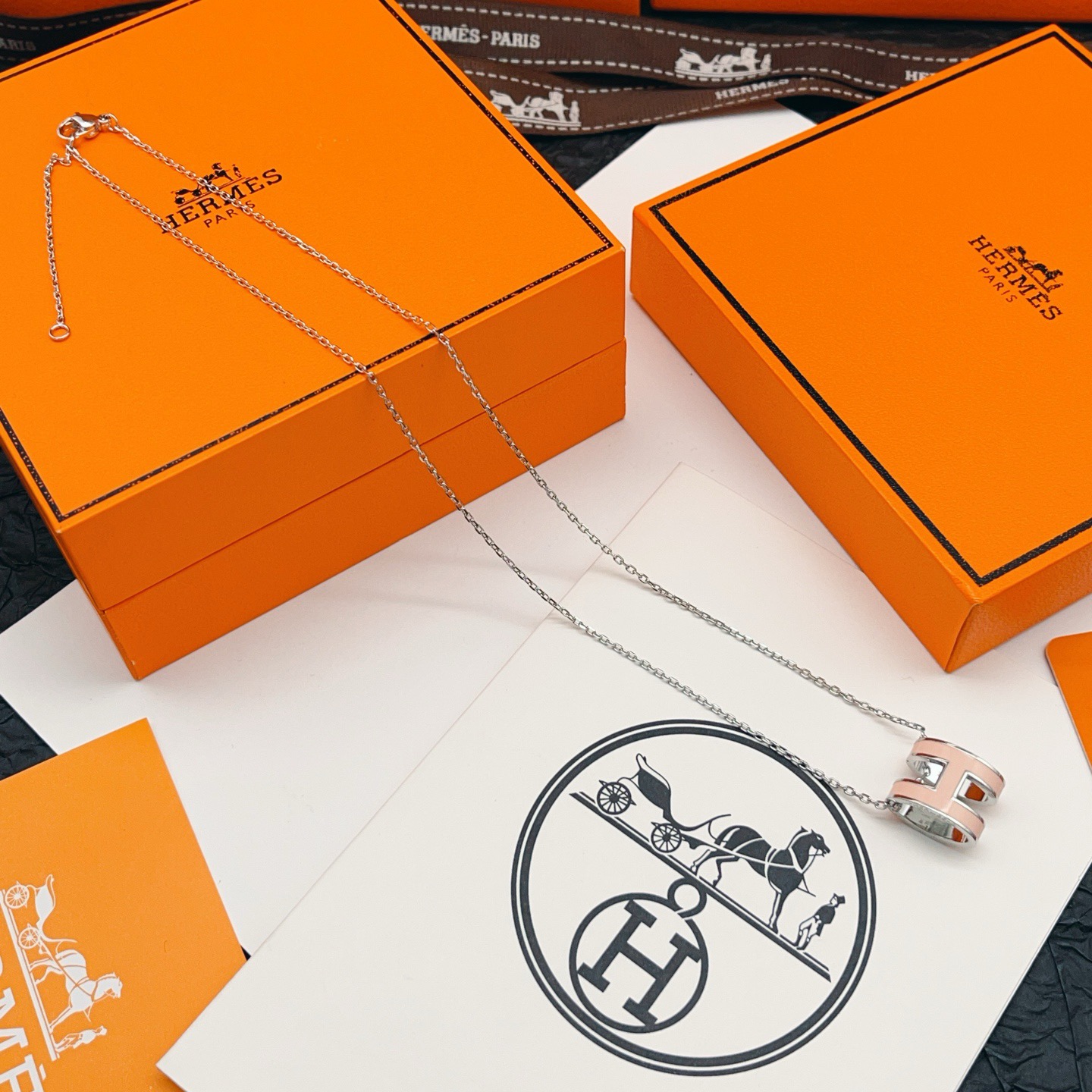 p55HX059 [He@mes latest pink enamel silver necklace large chain] consistent Zp brass material, very photogenic‼ ️The design is very special and worth buying the high-end handmade workshop series