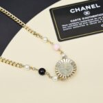 60 Chanel k sunflower bead necklace classic double C logo + black star diamond background,