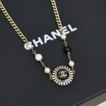 Home ACCESSORIES 60 Chanel k sunflower bead necklace classic double C logo + black star diamond background,