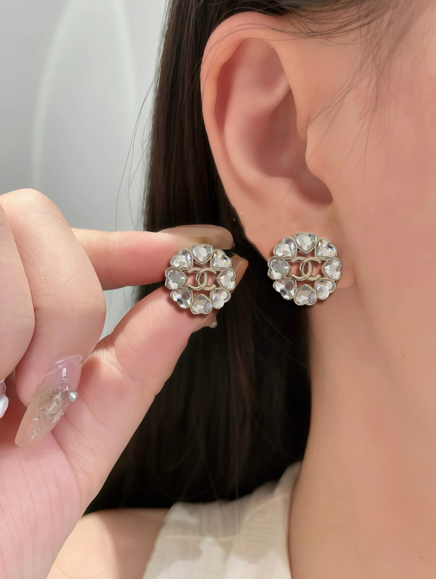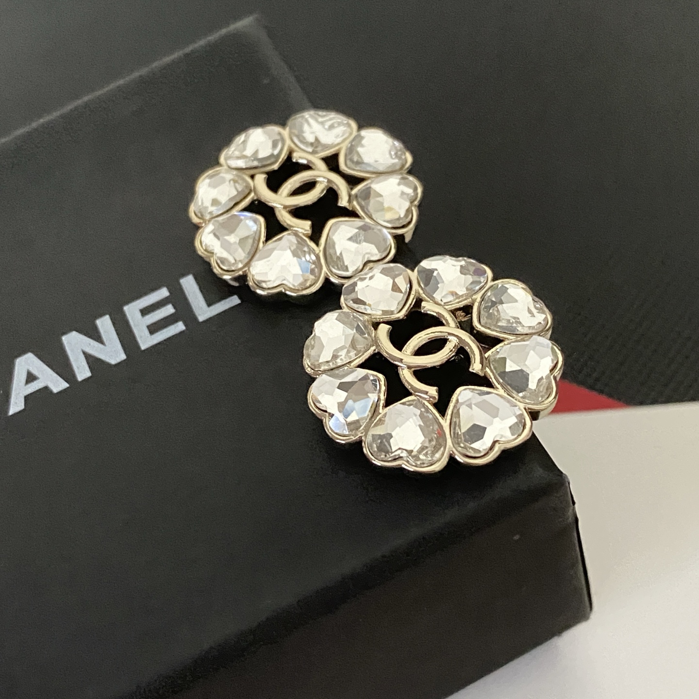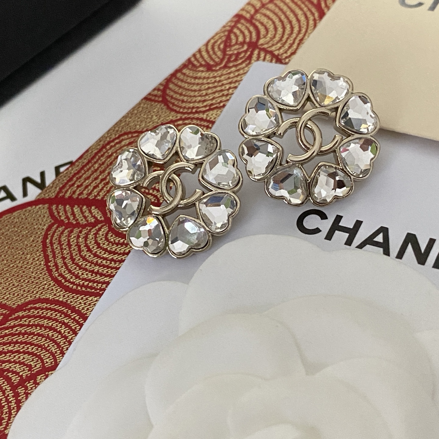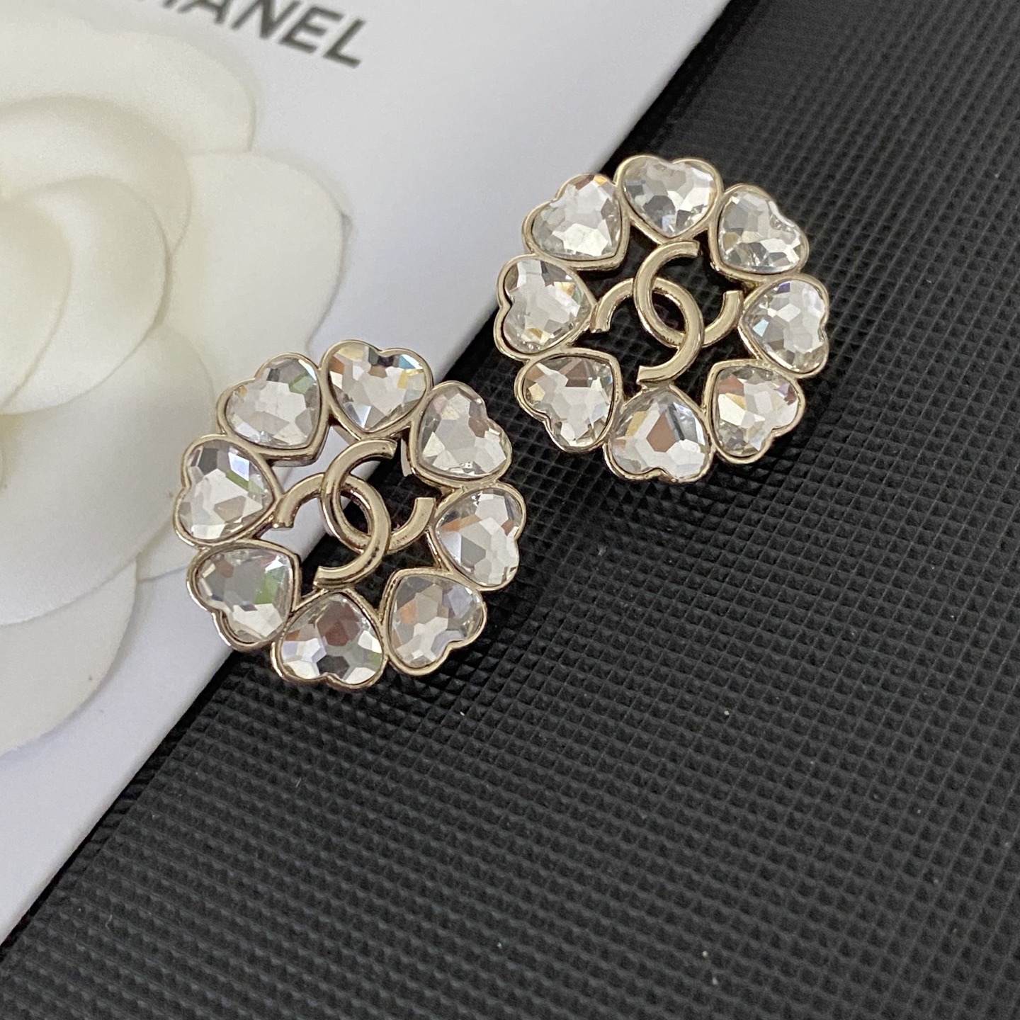 Home ACCESSORIES p60 Chanel Swarovski Love Heart Stud Earrings Hot Selling New CHAN 8 Swarovski Love Heart Rhinestones